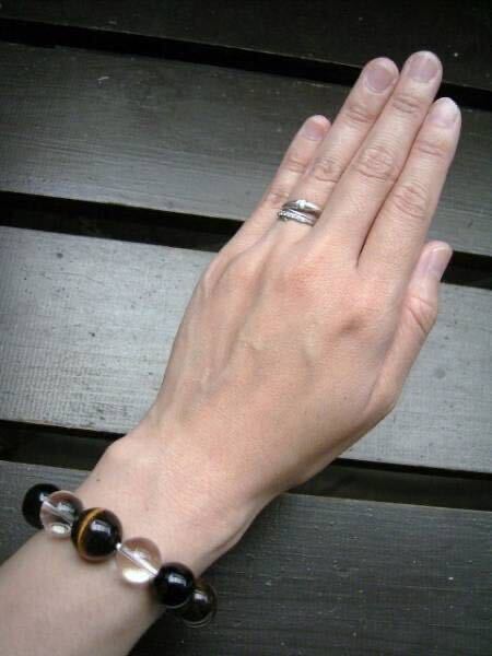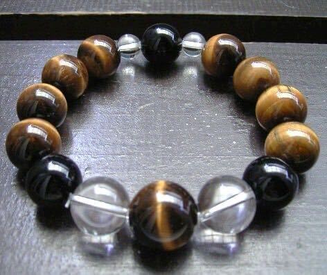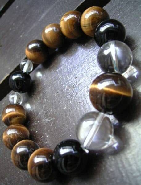 大玉*タイガーアイxオニキスx水晶ブレスレット 天然石 パワーストーン