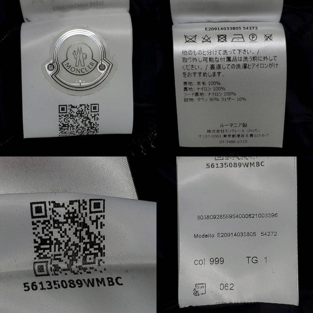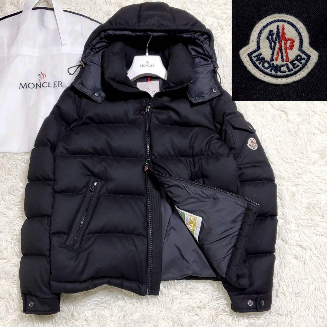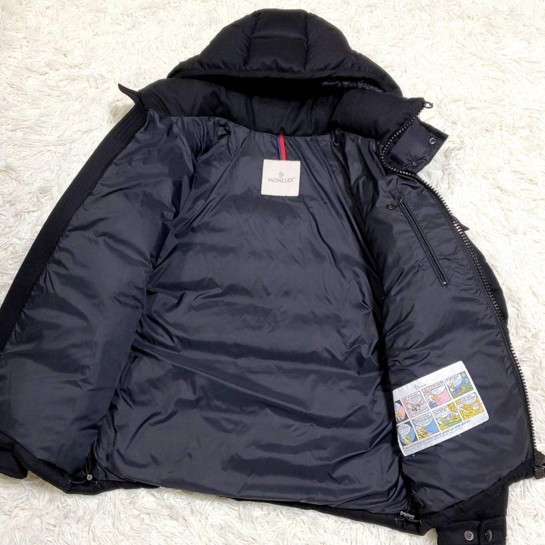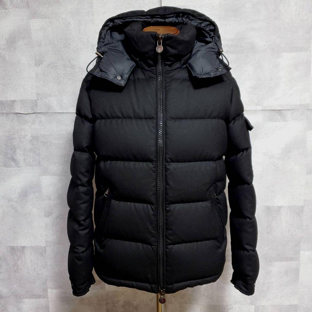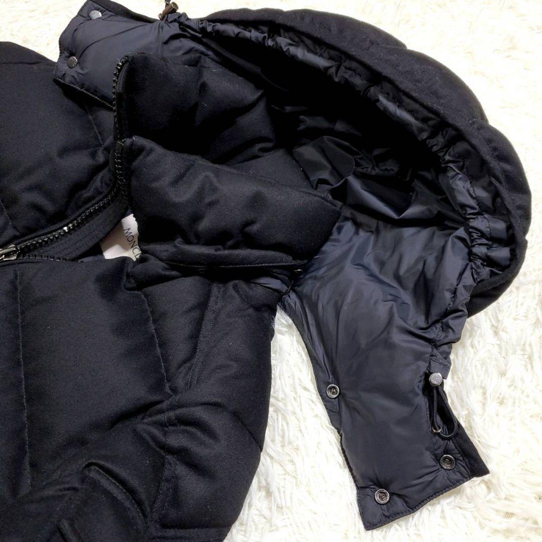 極美品 M モンクレール モンジュネーブル ウール100 ダウン ジャケット 黒 ロゴ ワッペン フード MONCLER MONTGENEVRE ブラック アニメタグ 1 DISTタグ 羊毛