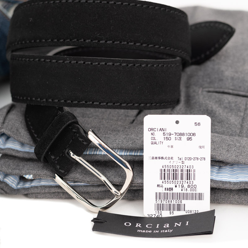 08126【95cm】ORCIaNI オルチアーニ メンズ イタリア製ブラックスエード ステッチレザーベルトト 送料無料Yahoo!かんたん決済 即決価格
