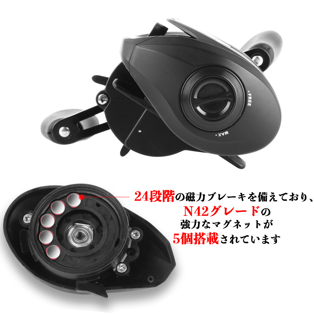 yu367 リール ベイトリール 軽量 ベイトフィネス 軽量ルアー 最大ドラグ8KG ギア比7.5:1 アルミスプール 海釣り 淡水釣り 両用