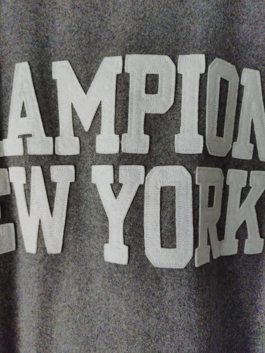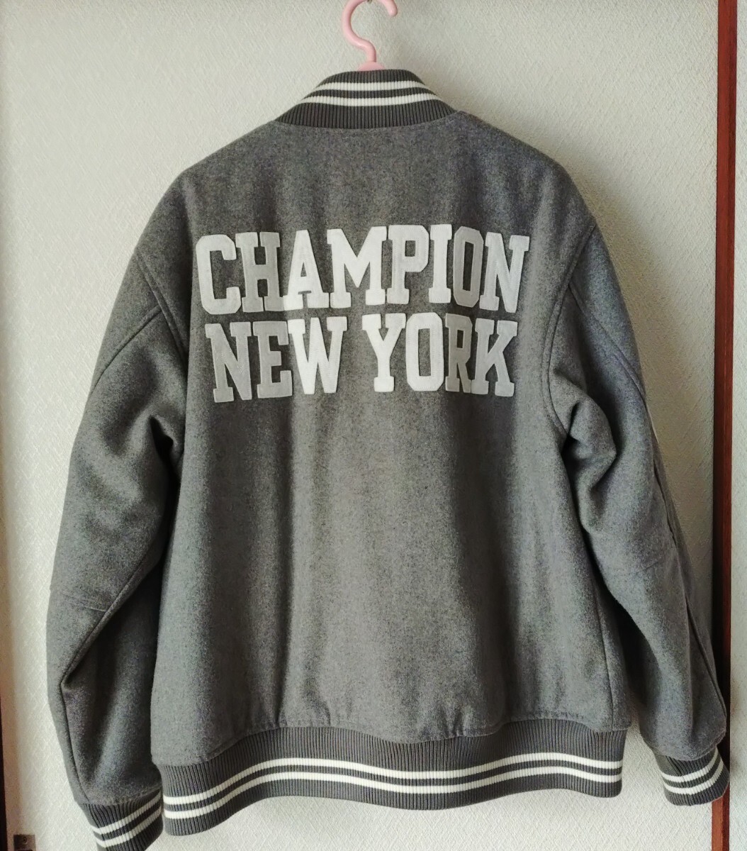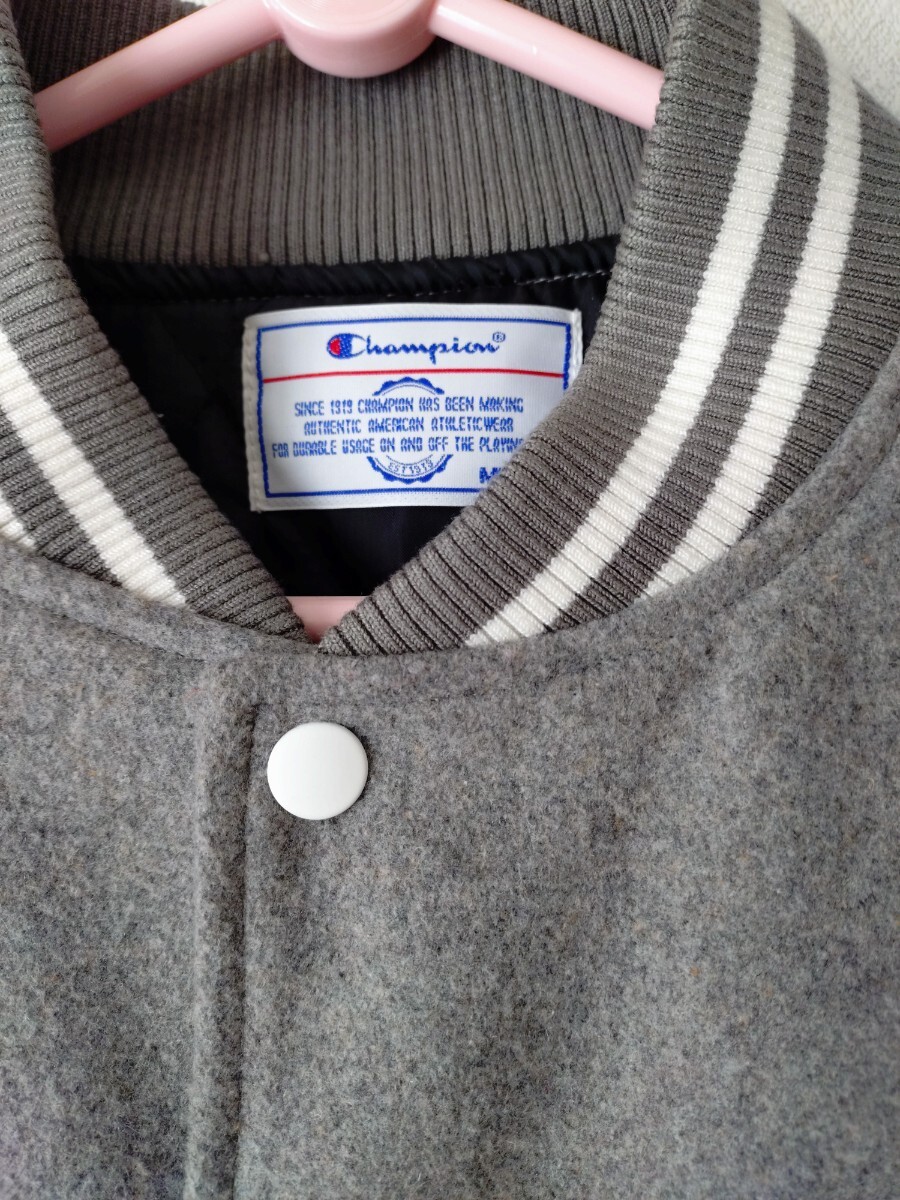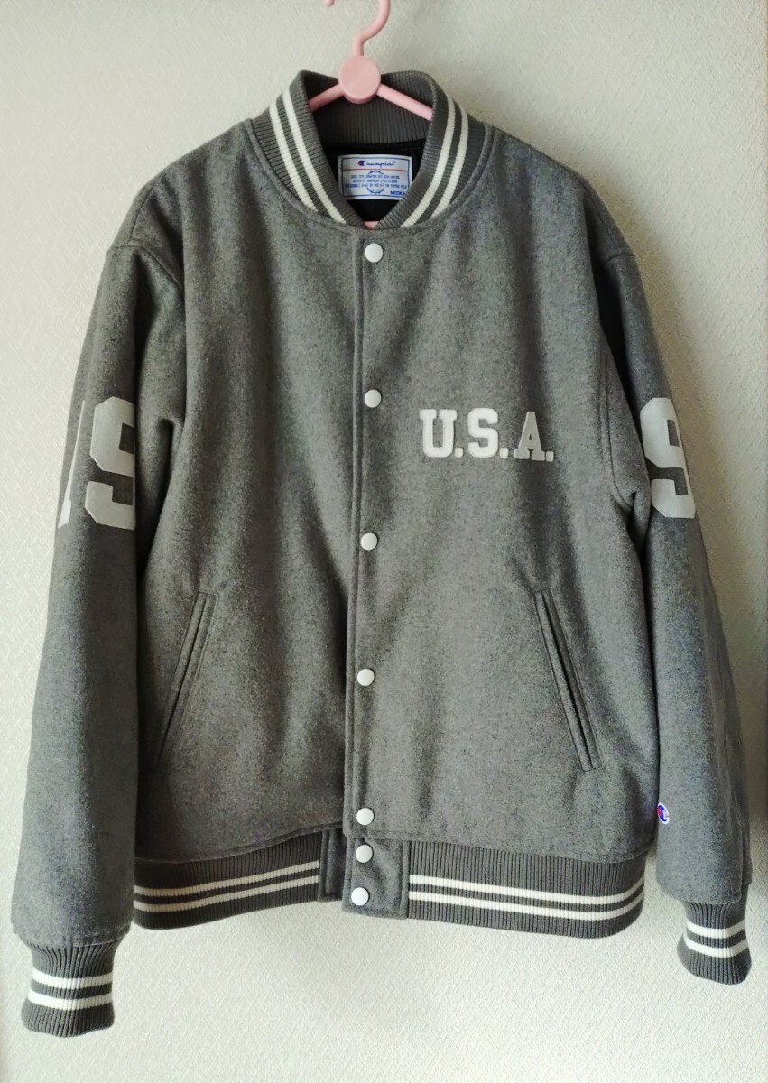 USED◆CHAMPION チャンピオン◆ビッグシルエット ワッペン ブルゾン スタジャン アウター コート 中綿 キルティング◇グレー