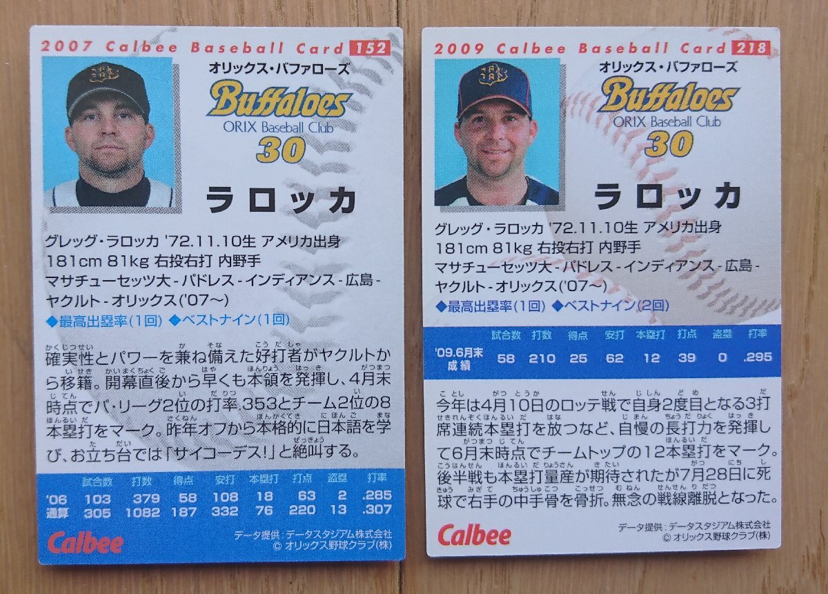 【カード・カルビー】ラロッカ 2007年152 / 2009年218 計2枚セット オリックス・バファローズ カルビープロ野球チップス