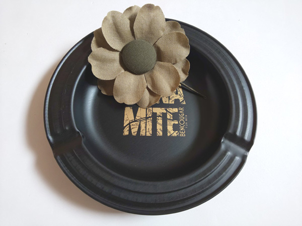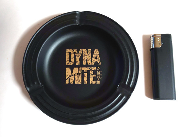 【BENCOUGAR】ベンクーガー 艶消し黒地に金色文字プリント 卓上 缶素材灰皿