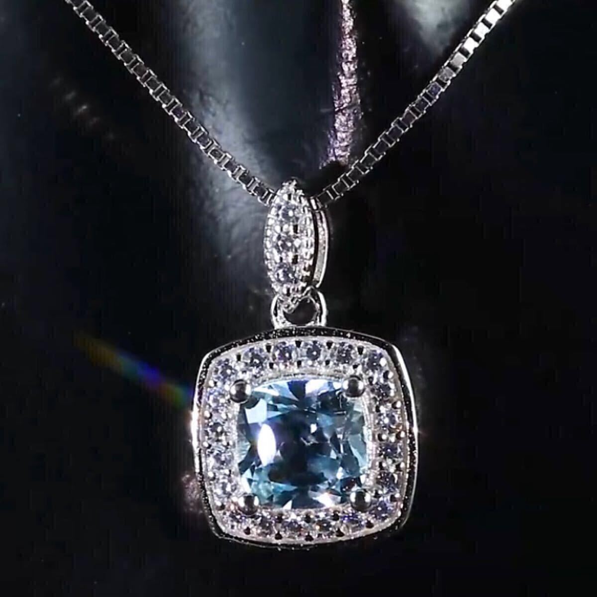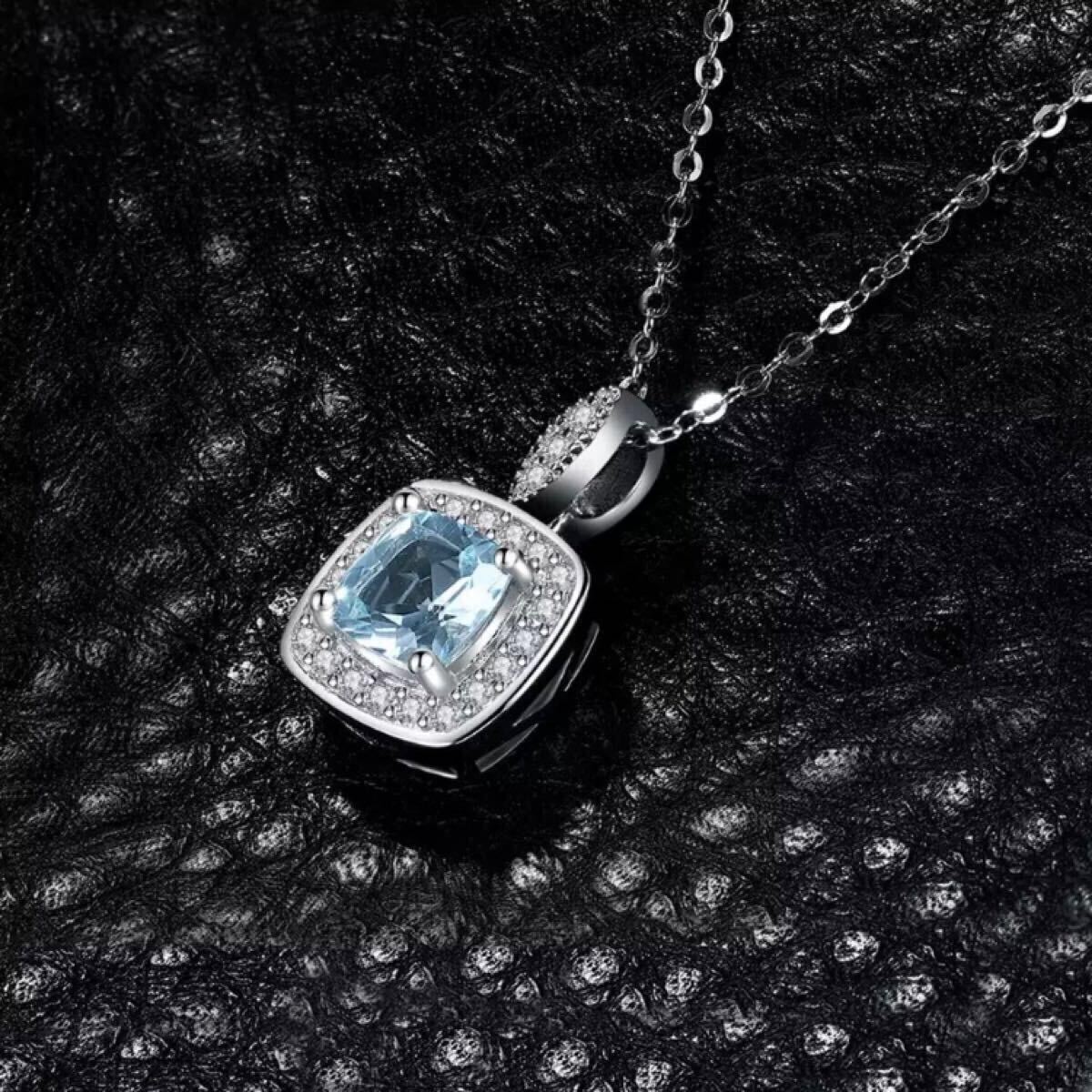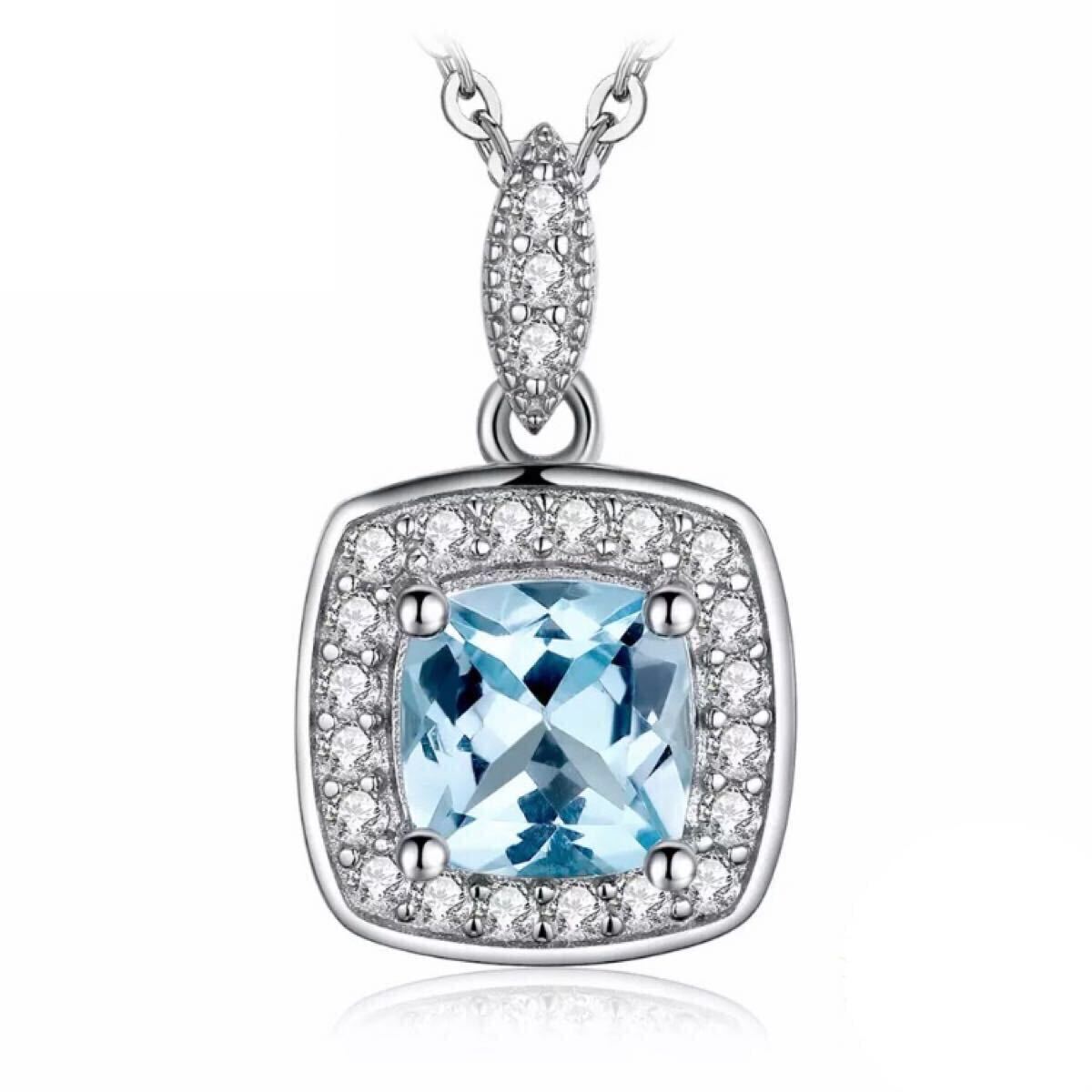 天然石スカイブルートパーズと、周囲に散りばめられたCZダイヤモンドの華やかなシルバーネックレスです。上品な華やかさのあるお品です。