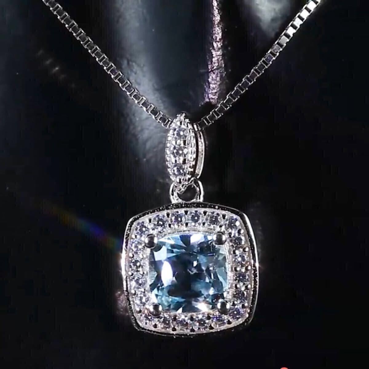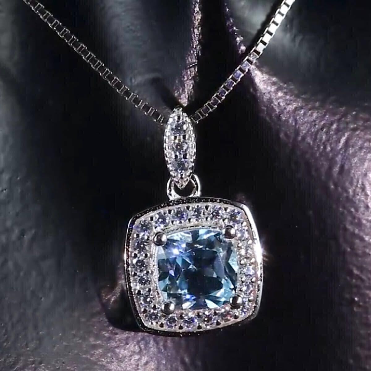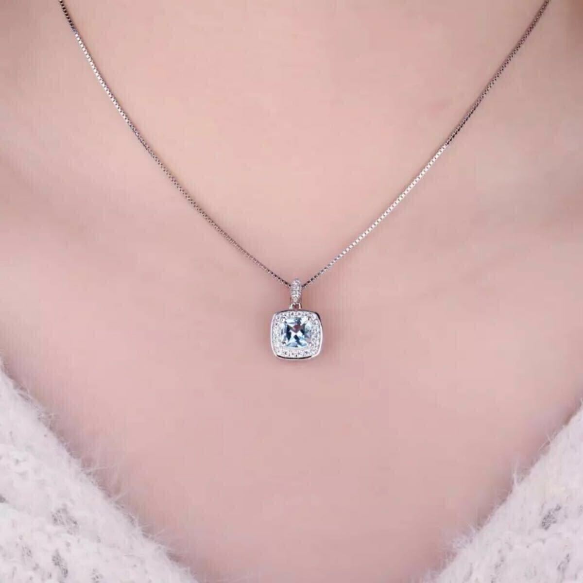 天然石スカイブルートパーズと、周囲に散りばめられたCZダイヤモンドの華やかなシルバーネックレスです。上品な華やかさのあるお品です。