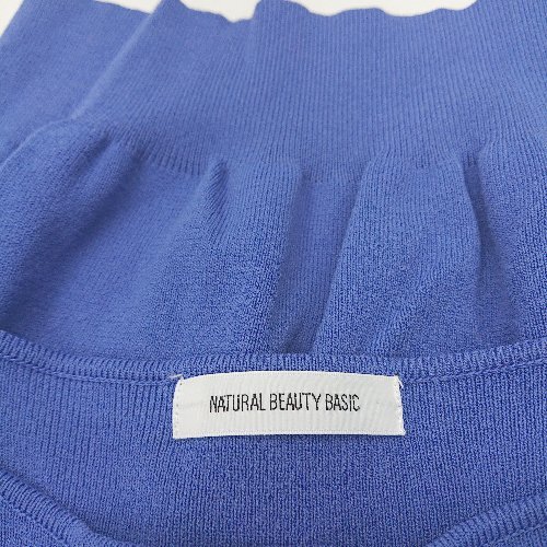 ◇ ⊂ NATURAL BEAUTY BASIC ナチュラル 丸首 七分袖 ニット サイズFR ブルー系 レディース E