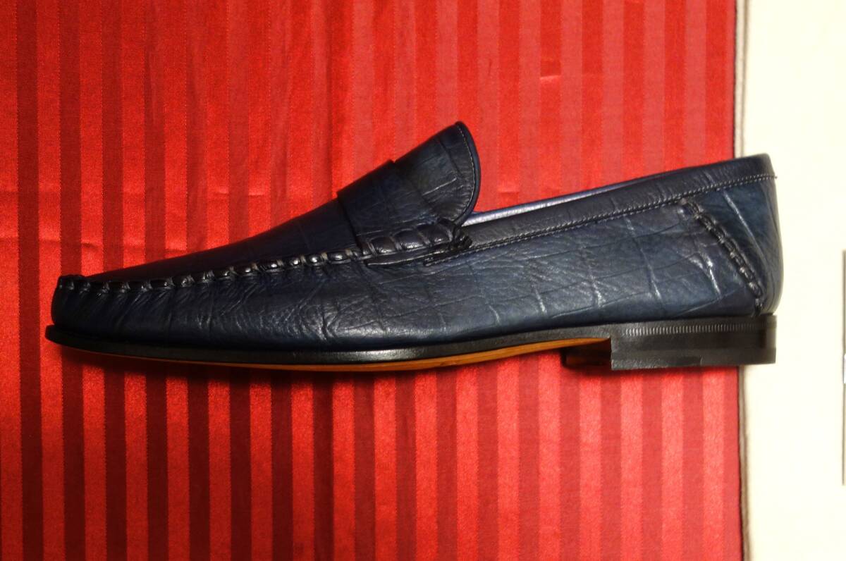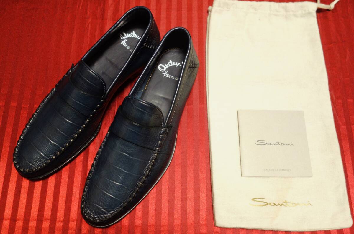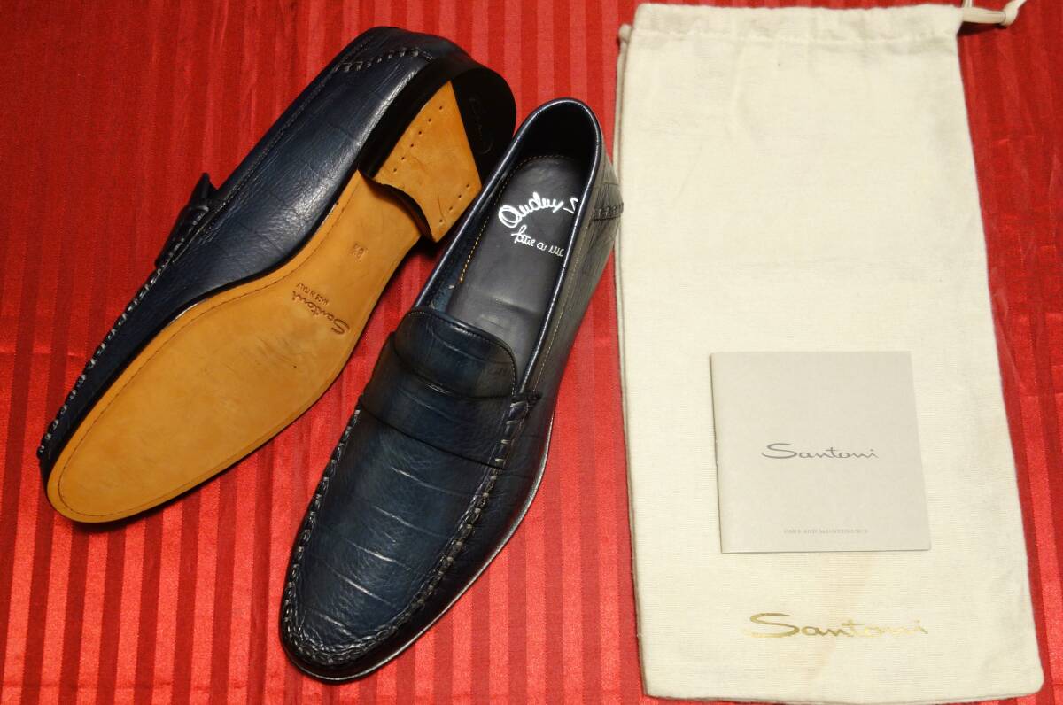 定価16.5万円↑未使用品 サントーニ クロコ型押しローファー ネイビー UK81/2 US91/2(日本サイズ27~27.5cm)