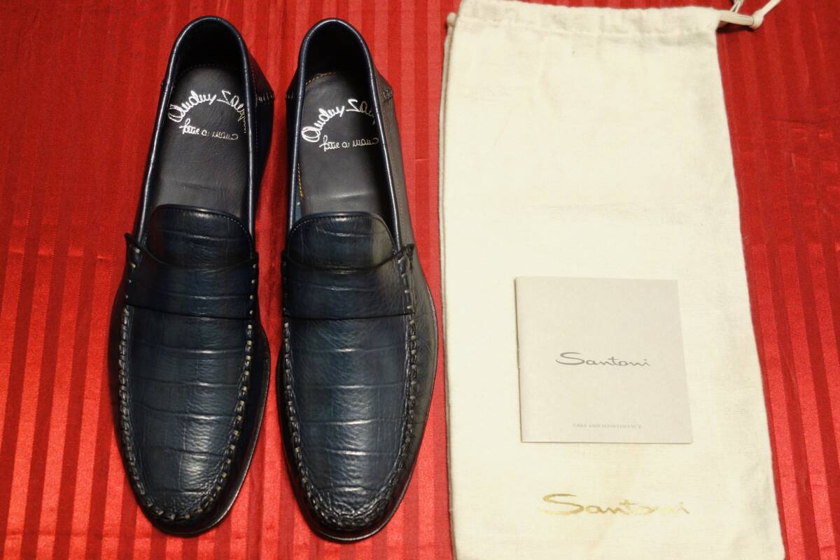 未使用品サントーニ クロコ型押しローファー、ネイビーの出品です。