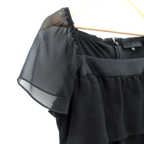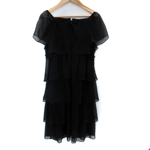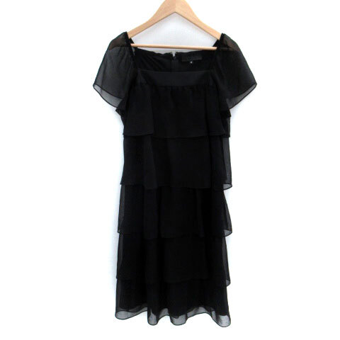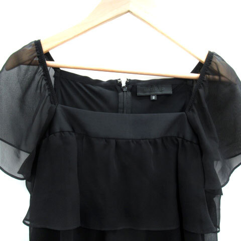 アンタイトル UNTITLED ワンピース ひざ丈 ノースリーブ スクエアネック シースルー ティアード 2 黒 ブラック /SM37 レディース