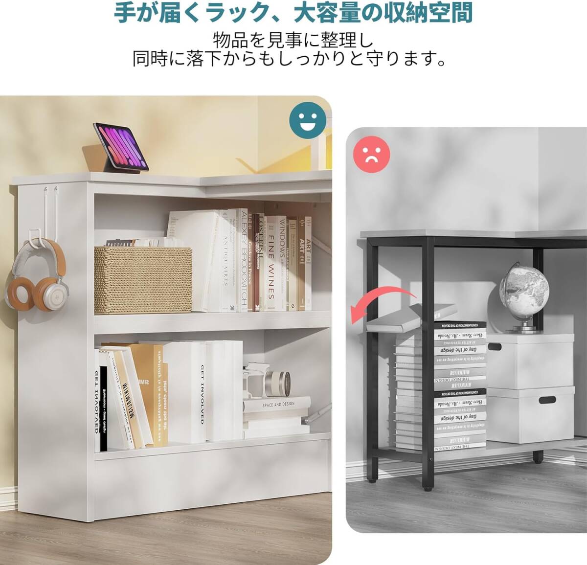 L字型のデザインは、棚の左右を自由に切り替えることができ、部屋や使用シーンに応じたレイアウトが可能です。