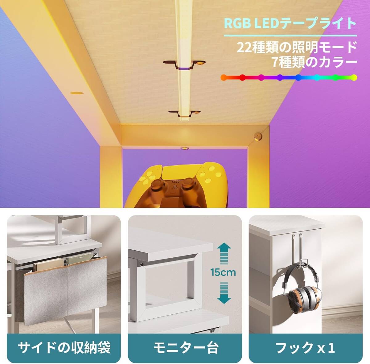 ゲーミングデスクとして、20種類のモードと7色から選べるRGBライトストリップを搭載しており、ゲームの世界に深く没入することができます。