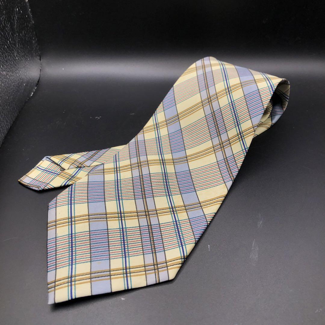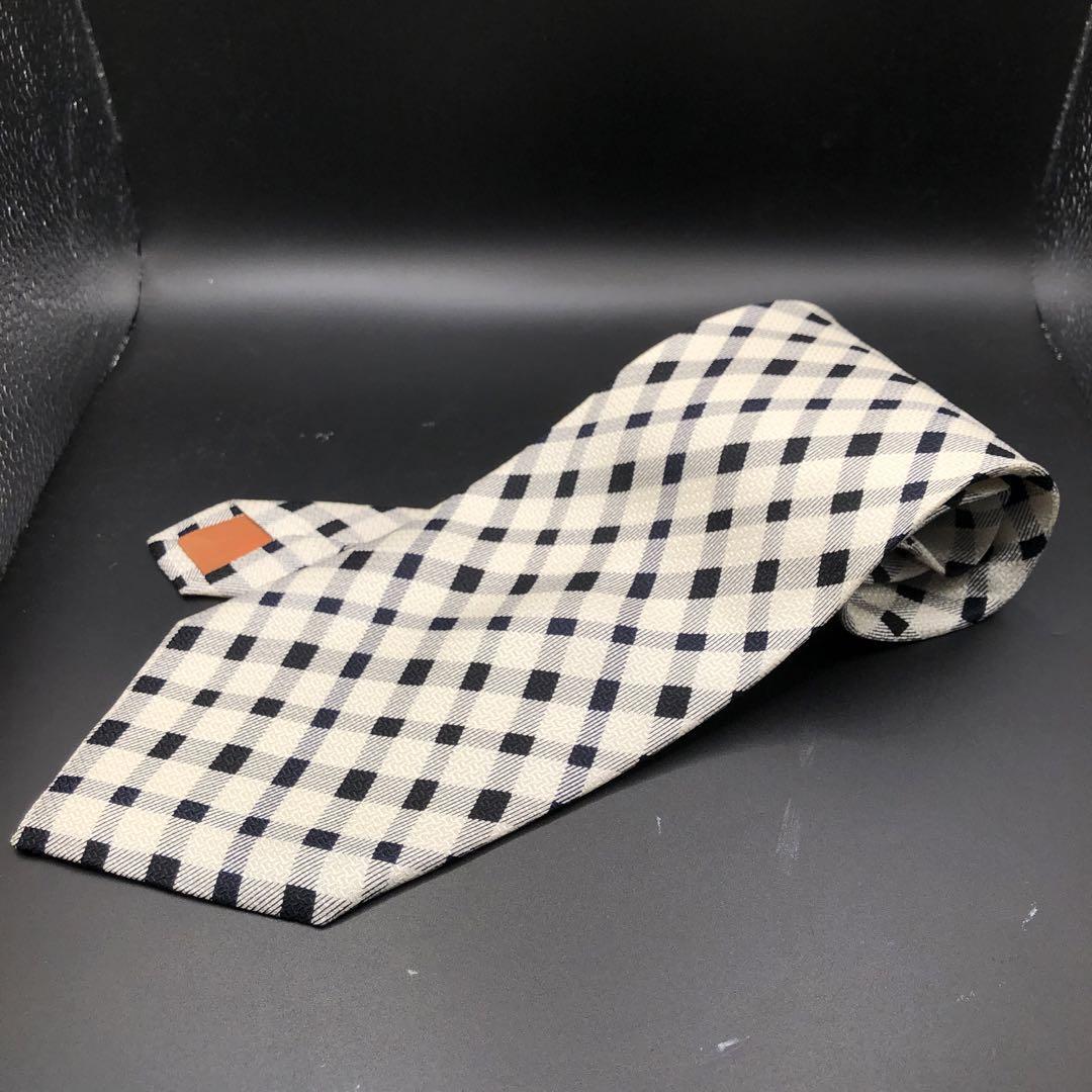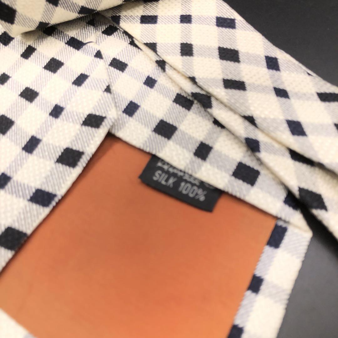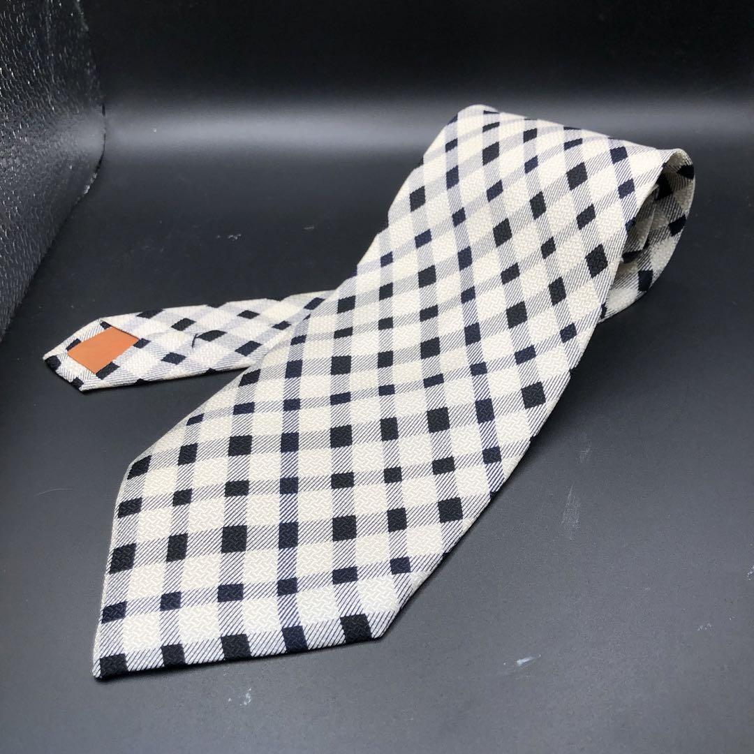 シルク100%のチェック柄ネクタイ、洗練されたスタイルに最適。