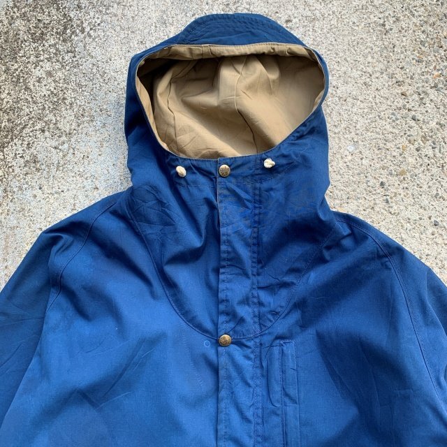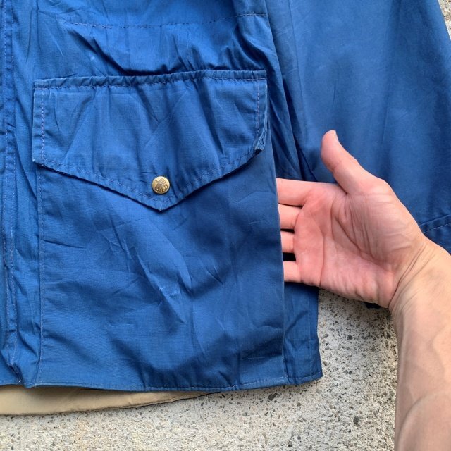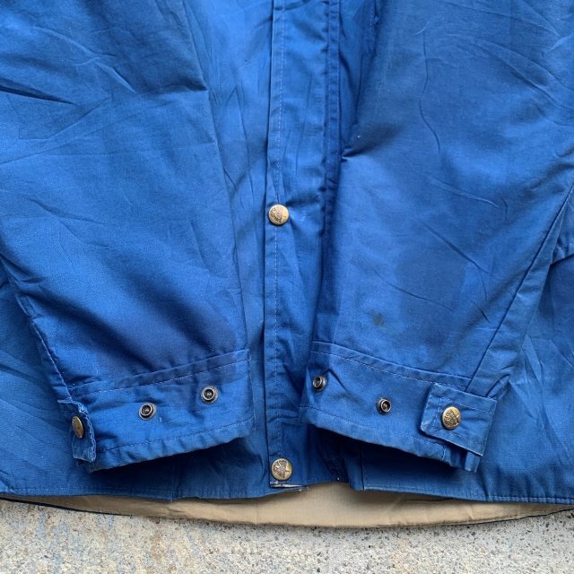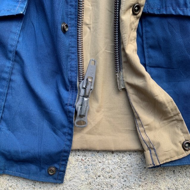 ★商品状態★ ・着用感があり、袖や下腹部に薄汚れ、ジップ不良が見られます。ジップの可動の鈍さ、最上部の13㎝程度は壊れており上がり切りません。スナップボタンでの着用可能。 ・古着慣れされている方でしたら問題なく着用していただける程度かと思います。 ・YKKダブルジップ ★素材★ おそらく ナイロン×コットン ★配色★ ネイビーもしくは濃い青系 ★サイズ表記★ M サイズ表記の割に大きめ ・実寸を参考にして下さい。 ★実寸サイズ★ 肩幅--- 身幅60㎝(脇下~脇下) 着丈81㎝(襟下~裾) 裄丈88㎝(背面中央~袖先) ・平置きにての採寸となります。 ・若干の誤差はご了承ください。 |