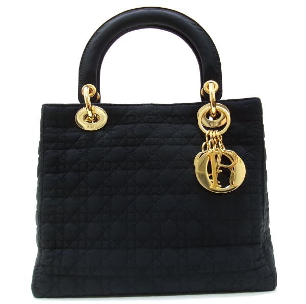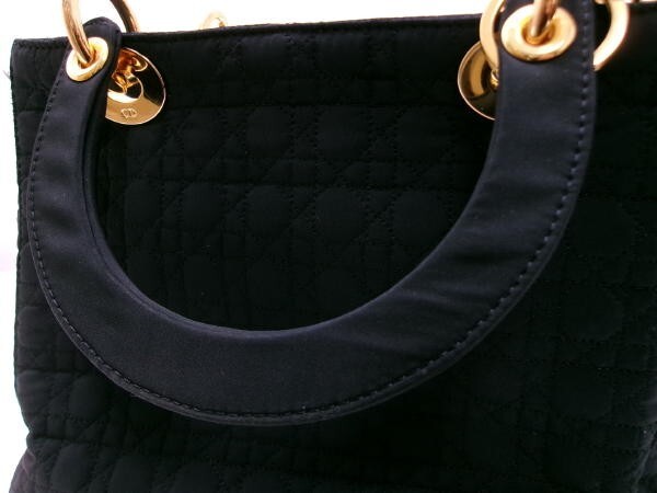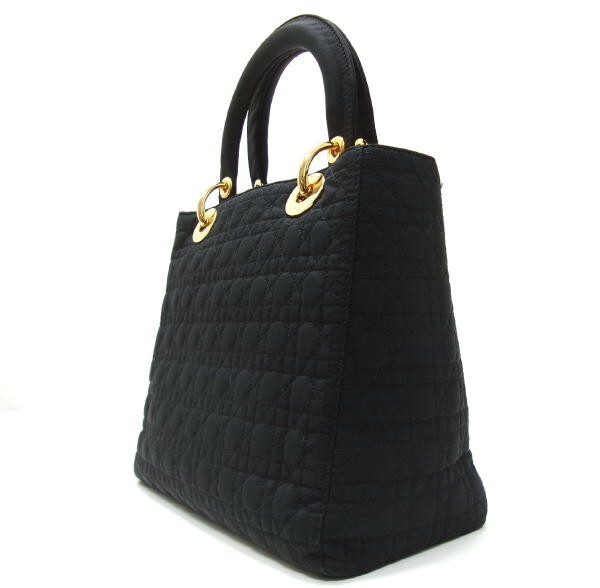 美品★Christian Dior クリスチャンディオール★レディディオール カナージュ ハンドバッグ★ナイロン ブラック クリーニング済み