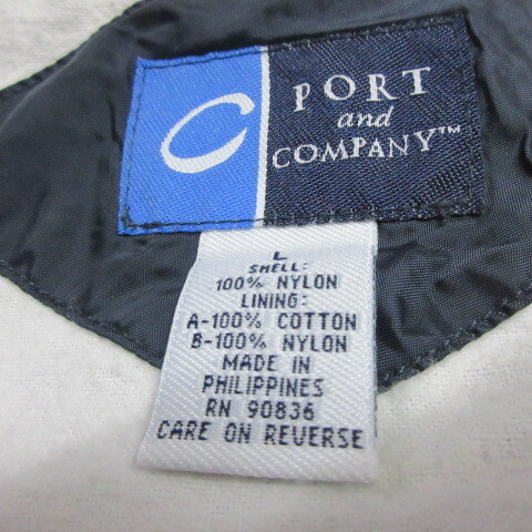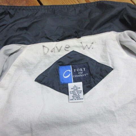 ★Size L (表記 L)着た感じ ~175cm 肩幅 ーcm, 身幅 63cm , 着丈 70cm,裄丈 89cm 中央から袖口★アメカジ古着 ウインドブレーカー 普段着にいかがでしょうか! ★Condition 10/7目立つダメージはありませんしわ名前入り多少の汚れ解れ★Material 100%ナイロン★Color 濃紺★Made in フィリピン