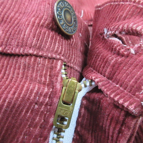★Size w33 (表記 ? )ウエスト 42cm(84cm)股上 30cm , 股下 83cm ,裾幅 20cm,全長111cm 渡り31cm★Goodsアメカジ古着 80s リーバイス コーデロイパンツ人気519 細身TALON リーバイスZIP★Condition 10/7 使用感 目立つダメージはありません★Material ★Color エンジ★Made in USA