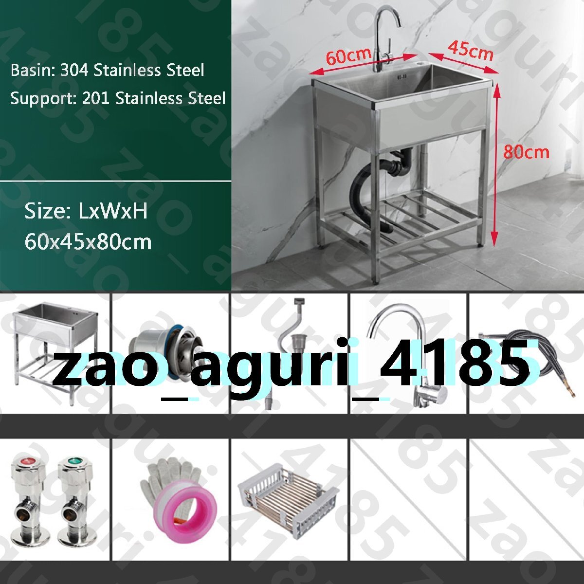 キッチンシンクガーデンシンク ステンレス 大容量シンク 簡易流し台流し台屋外簡易式 ステンレス製台所 蛇口水栓付き シンク 水切り 屋外 キッチン用流し台業務用 シンク 1槽式台所の流し台 自立型シンクステンレス鋼シングルシンクコンパクトステンレス大容量流し台 工具不要 作業スペース付き 静音加工 結露対策 防油 防汚 工場 アウトドア 農園 屋外、屋内、ガレージ用 (Size : 60x45