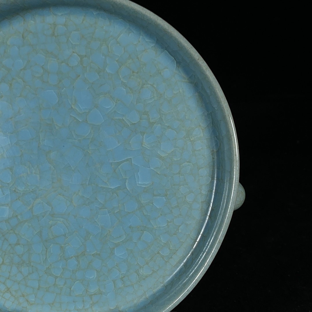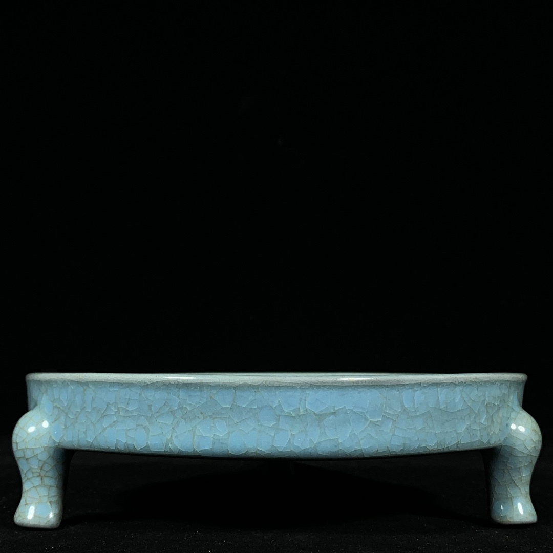 宋時代 汝窯 冰裂紋 三足洗 筆洗 書道具 極細工 古賞物 古美味 東洋彫刻 時代物 骨董 中国古美術
