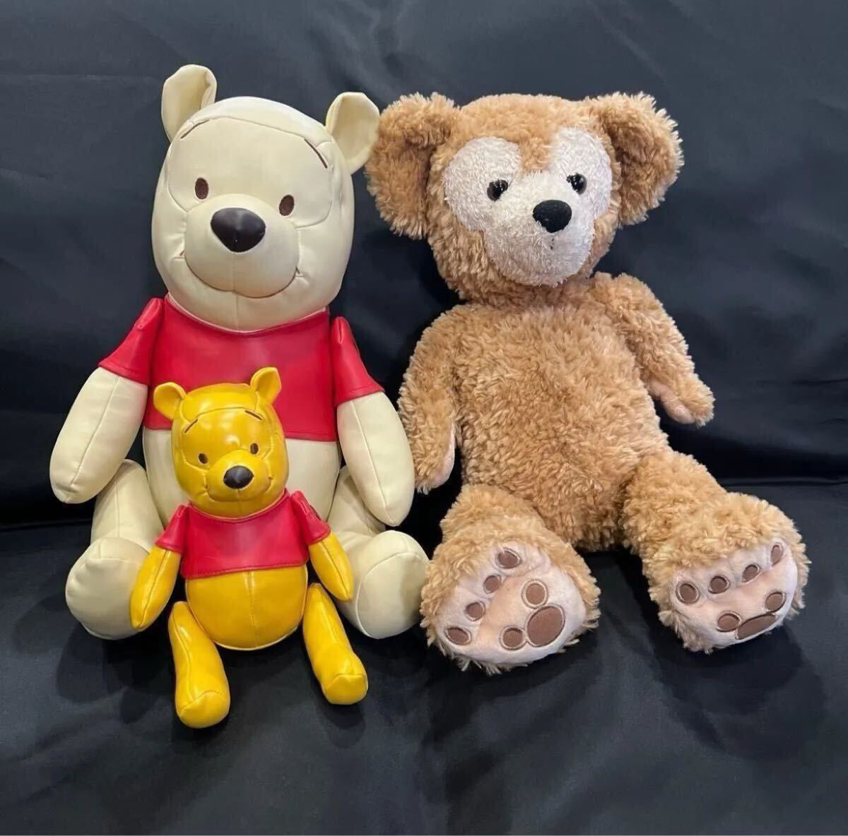 自宅で飾っていたぬいぐるみです。ダッフィーはディズニーシーで購入しました。プーさんは覚えていません。いろいろなサイトを見ましたが同じ物がありません。手数料、送料が高いため値下げは出来かねます。写真の通り中古品という事をご理解いただける方のみよろしくお願い致します。