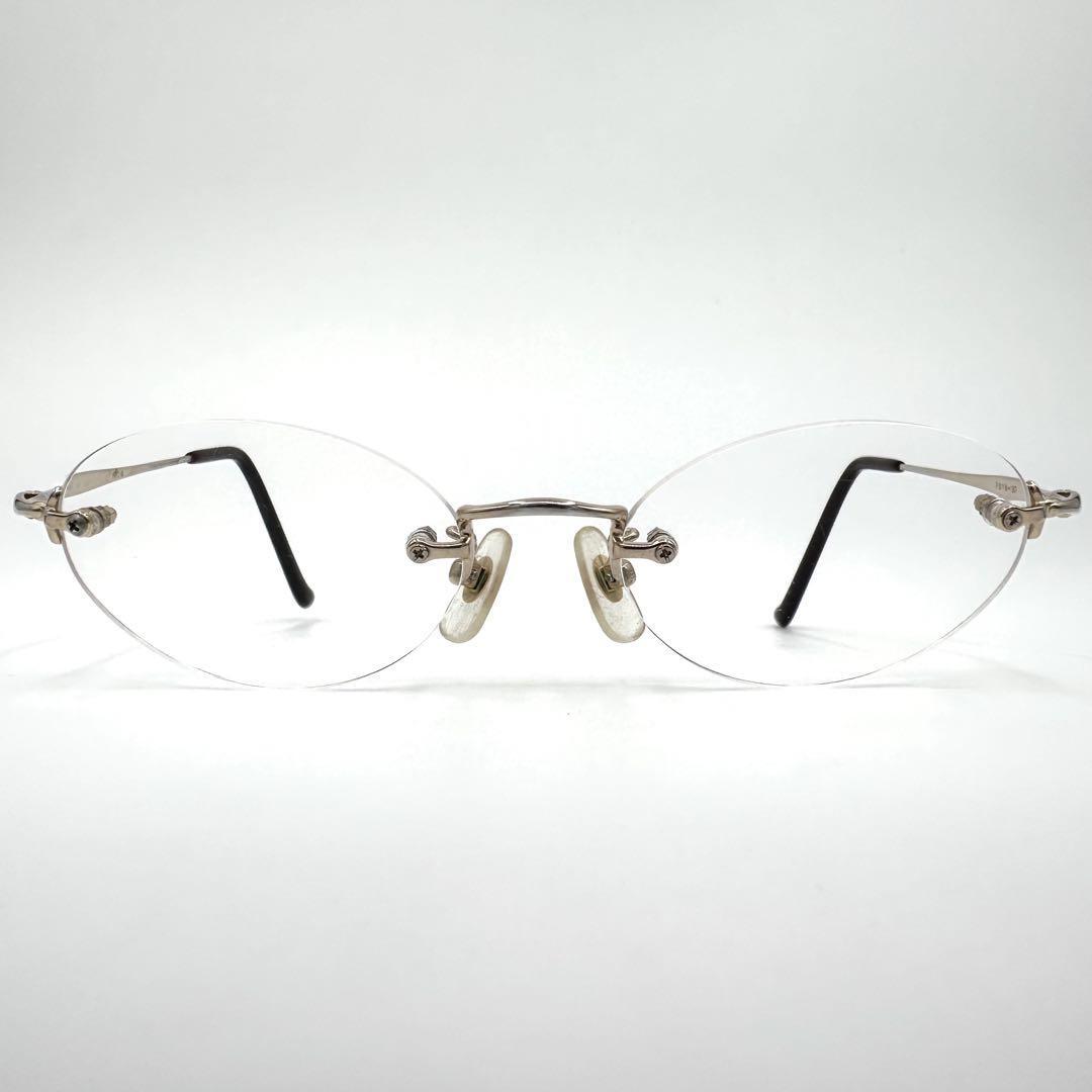 メガネ 眼鏡 サングラス アイウェア 度入り チェック柄 オーバル リムレス 1026 F18-137