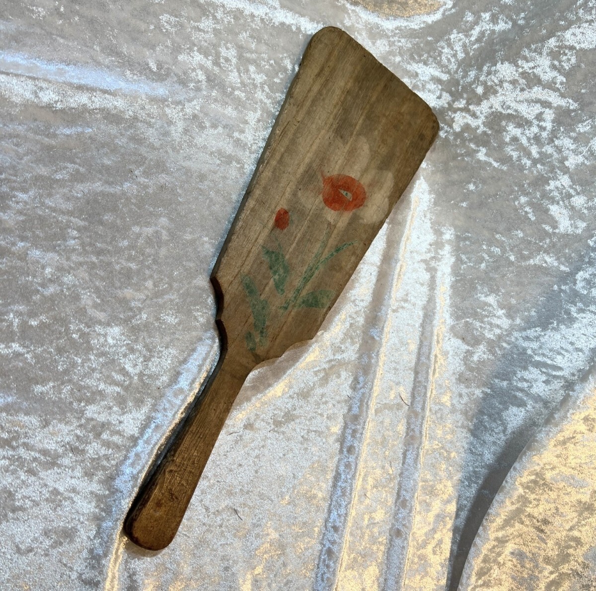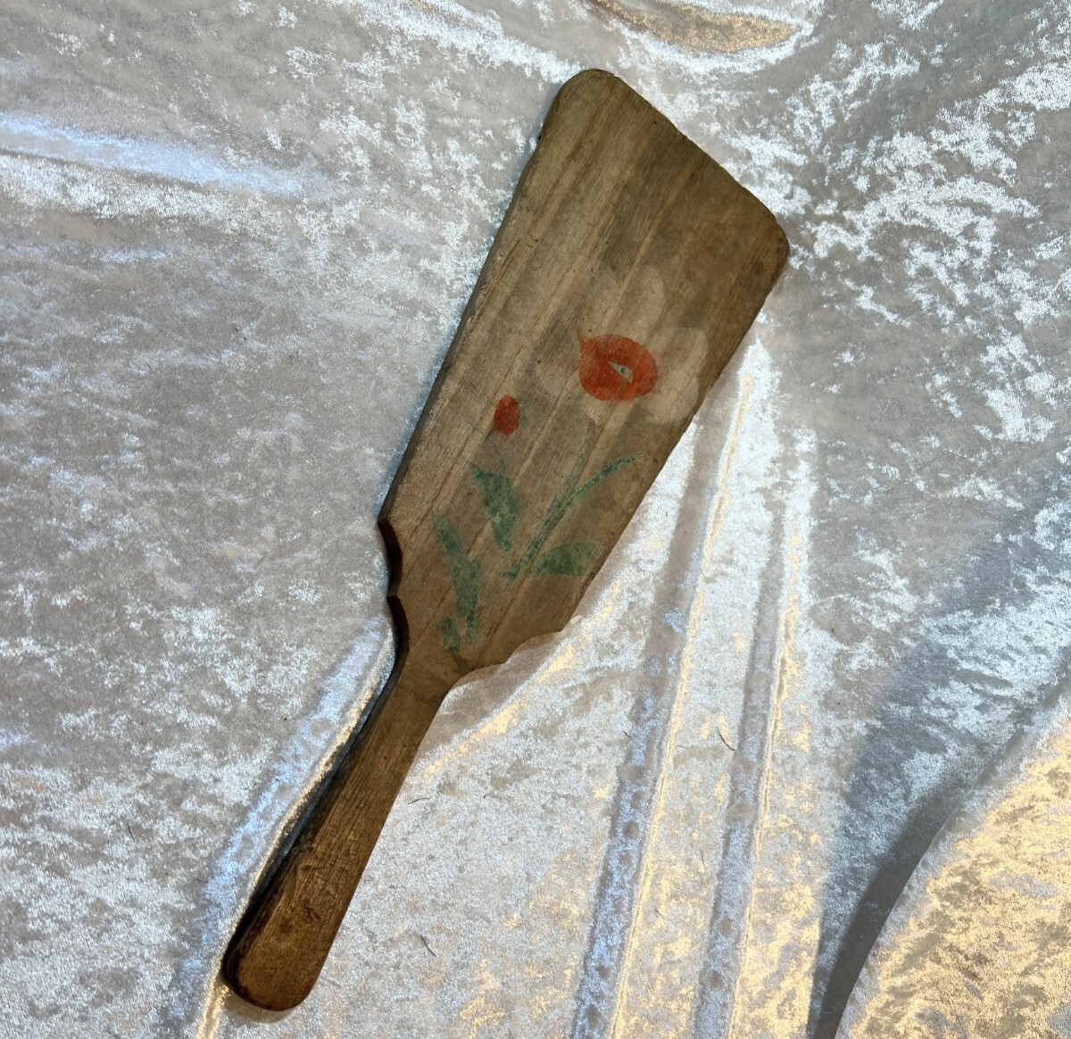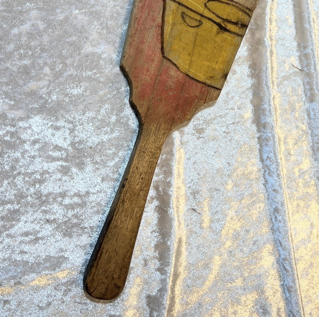 【雑貨・古民具】羽子板 木製 ウサギの餅つきのデザイン 裏は花模様 昭和レトロ ディスプレイ用品 インテリア用品 骨董品 アンティーク商品説明+++ 商品名:羽子板
