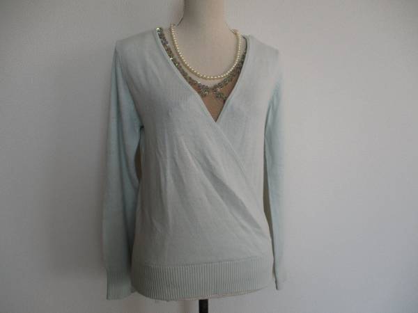 872【訳有 送料無料】INGNI イング レディース トップス 長袖 ニット カットソー カシュクール Vネック M 薄水色 アンゴラ/ウール混