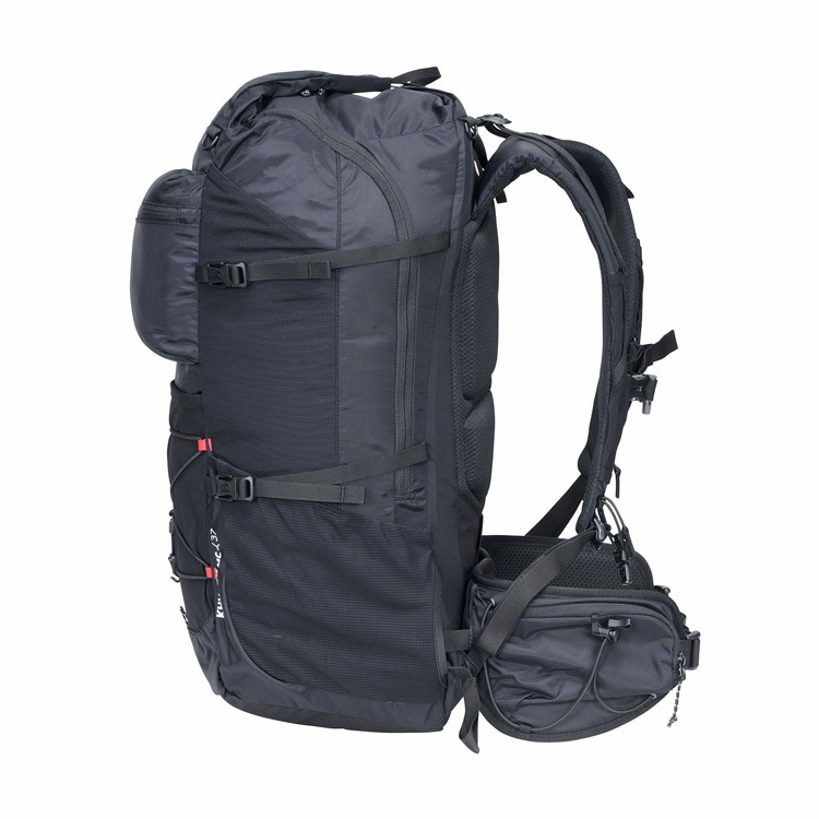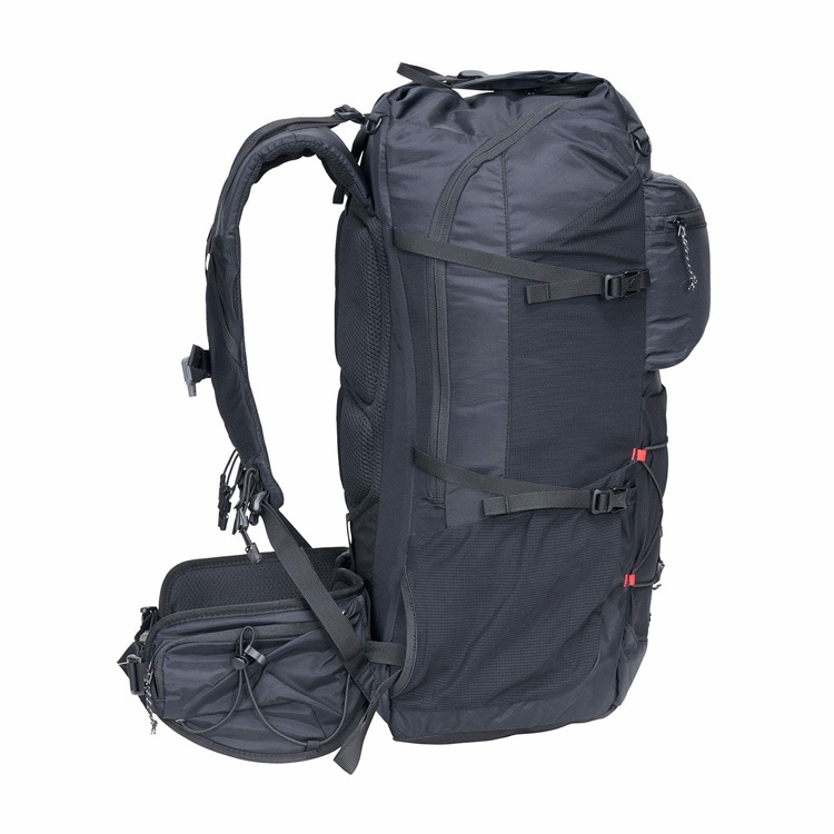 山を越え、街を抜け、また山へと入る長い山旅に対応した個性あふれる多彩な機能を備えた多用途型リュックサックです。ワイドジッパー式で大きく開くメイン収納は小物の入るジップポケットも備え、容易なアクセスとスマートなパッキングを可能にします。またフロントとサイド、ショルダーハーネスに取り付けられた大小さまざまなストレッチメッシュポケットをはじめ、コンプレッションストラップやエラスティックコードなど、多様な目的に合わせた収納・アタッチメントを備え、未知なる自然への快適な旅をサポートします。