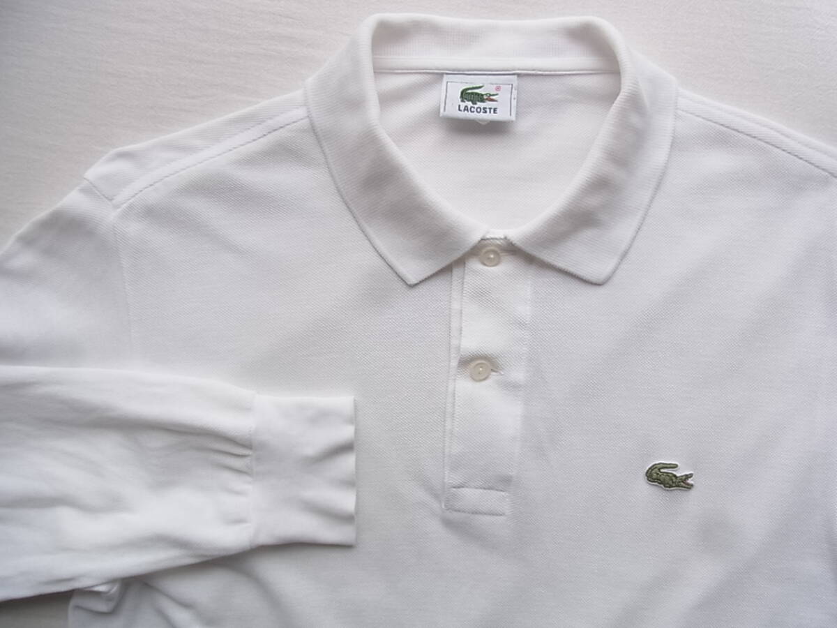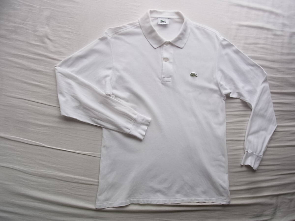 LACOSTE ラコステ 定番鹿の子素材 長袖ポロシャツ L1312 サイズ 4 ホワイト 大沢商会製 袖に薄く汚れ有り