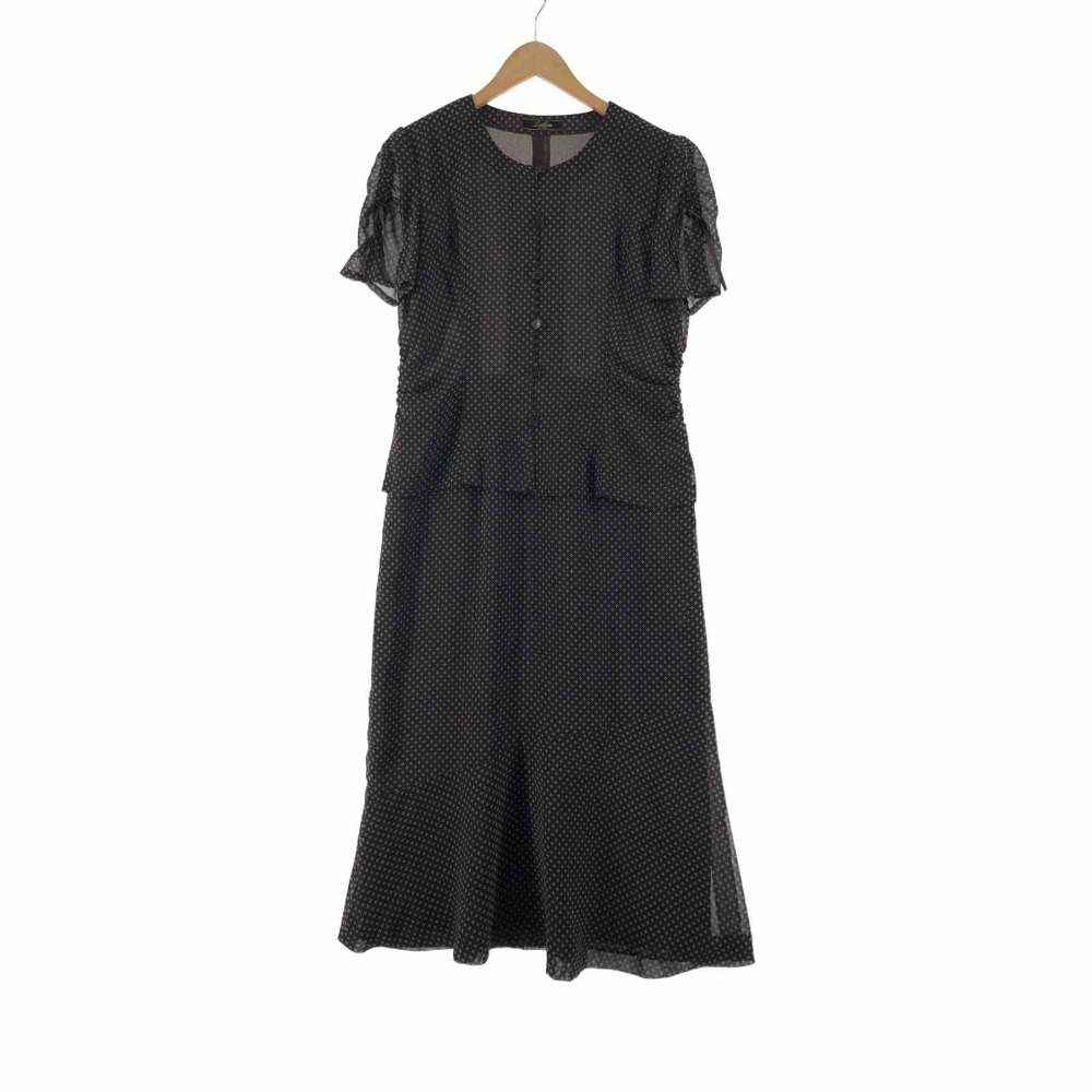 【商品名】中古 Leilian レリアン レディース ワンピース 小花柄 半袖 サイズ9 ブラウン やや傷や汚れあり