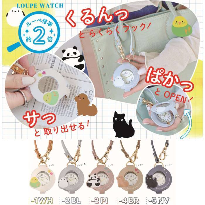 人気のハングウォッチとルーペがセットになりました!! ルーペは、ポーチ(カバー)と一体化されて開けばサット使えます♪ 時計は、ポーチ(カバー)に収納でき、傷防止等に役立ちます♪ バッグのチャームとして取り付けできるので、外出先でも重宝します!! 大切な方へのプレゼントにいかがでしょうか♪ |