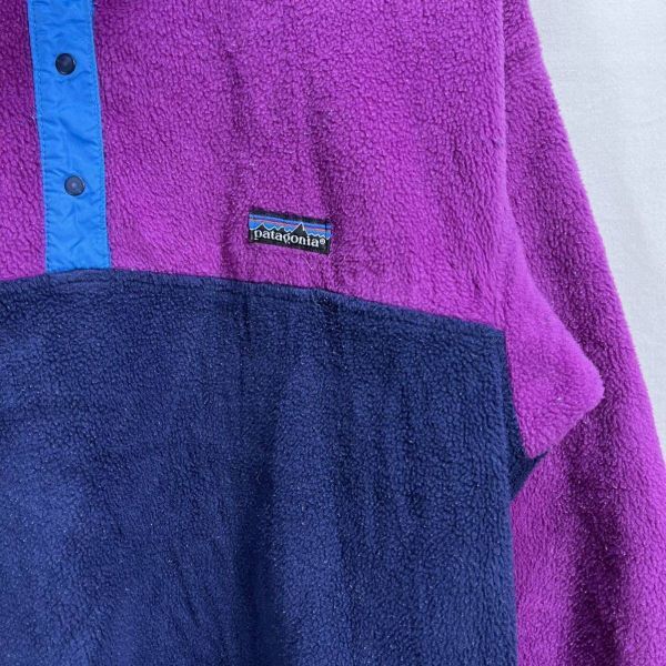 ■ 子供用 ビンテージ CANADA製 Patagonia パタゴニア 切り替えし フリース スナップT プルオーバー ジャケット サイズ10 紫 シンチラ ■