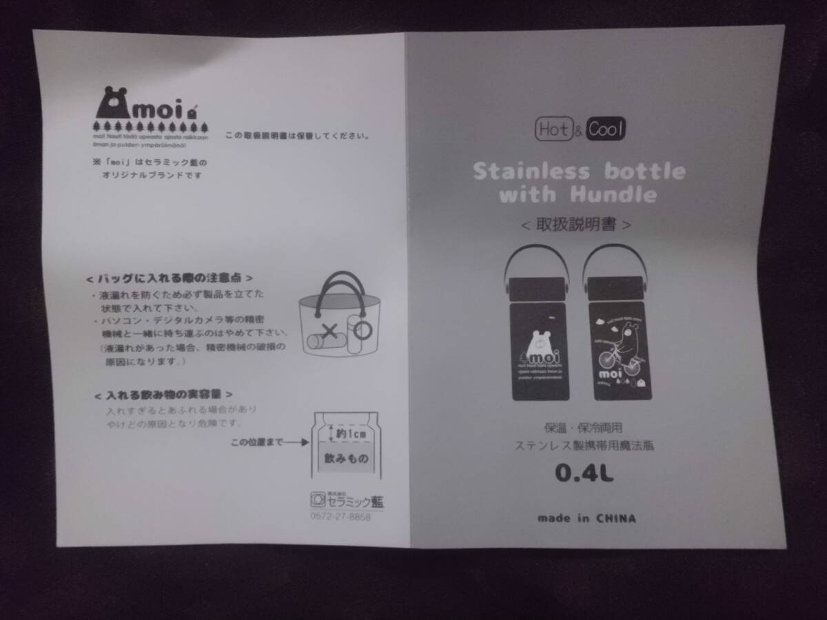 moi ステンレスボトル ネイビー 400ml 0.4L クマ柄 水筒です。自宅保管品に付き、ノークレーム、ノーリターンでお願いいたします。他にもいろいろ出品しておりますので、お暇な方はご覧下さい。