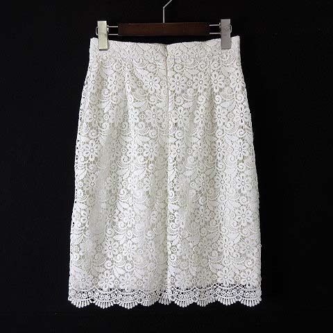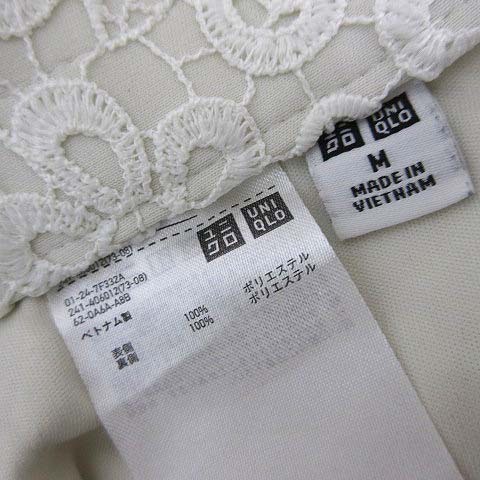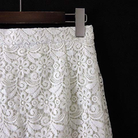 ユニクロ UNIQLO スカート タイト 花柄 レース 刺繍 スカラップヘム ひざ丈 M オフ白 アイボリー レディース