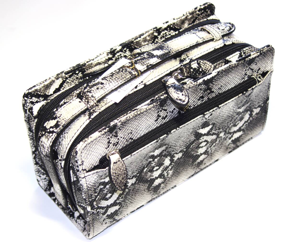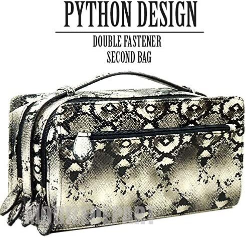 【4000円スタート】【送料込み】【期間限定】【新品】【税込み】大量 リアルパイソン型押し Wファスナー スクエア セカンドバッグ WH