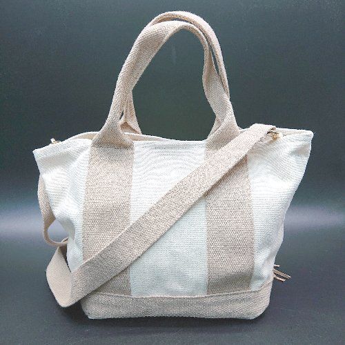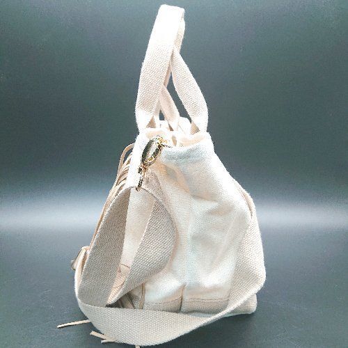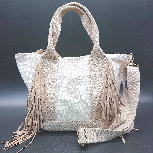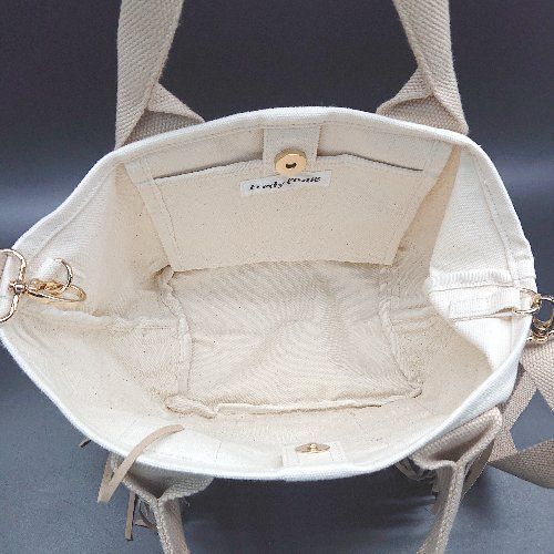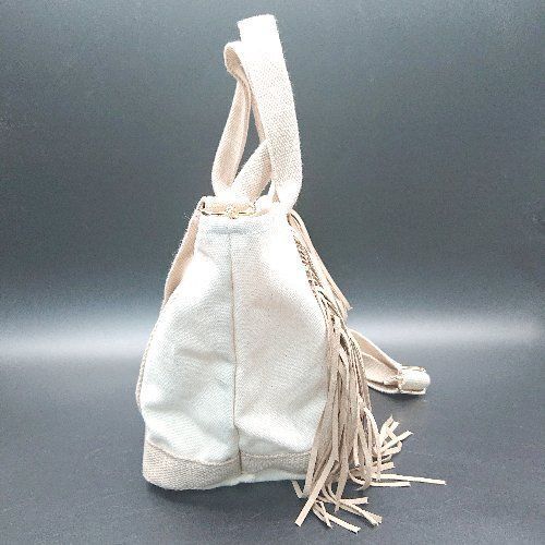 ◇ Fredy emue フリンジ ミニサイズ キャンバス生地 シンプル ハンド ショルダー アイボリー/ピンク レディース E