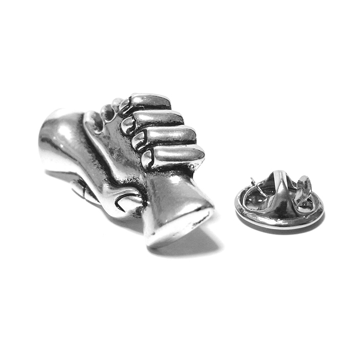 ラペルピン★ピンズ 握手 ハンドシェイク シェイクハンド 友好 親交 挨拶 アンティーク・シルバー pin-1737