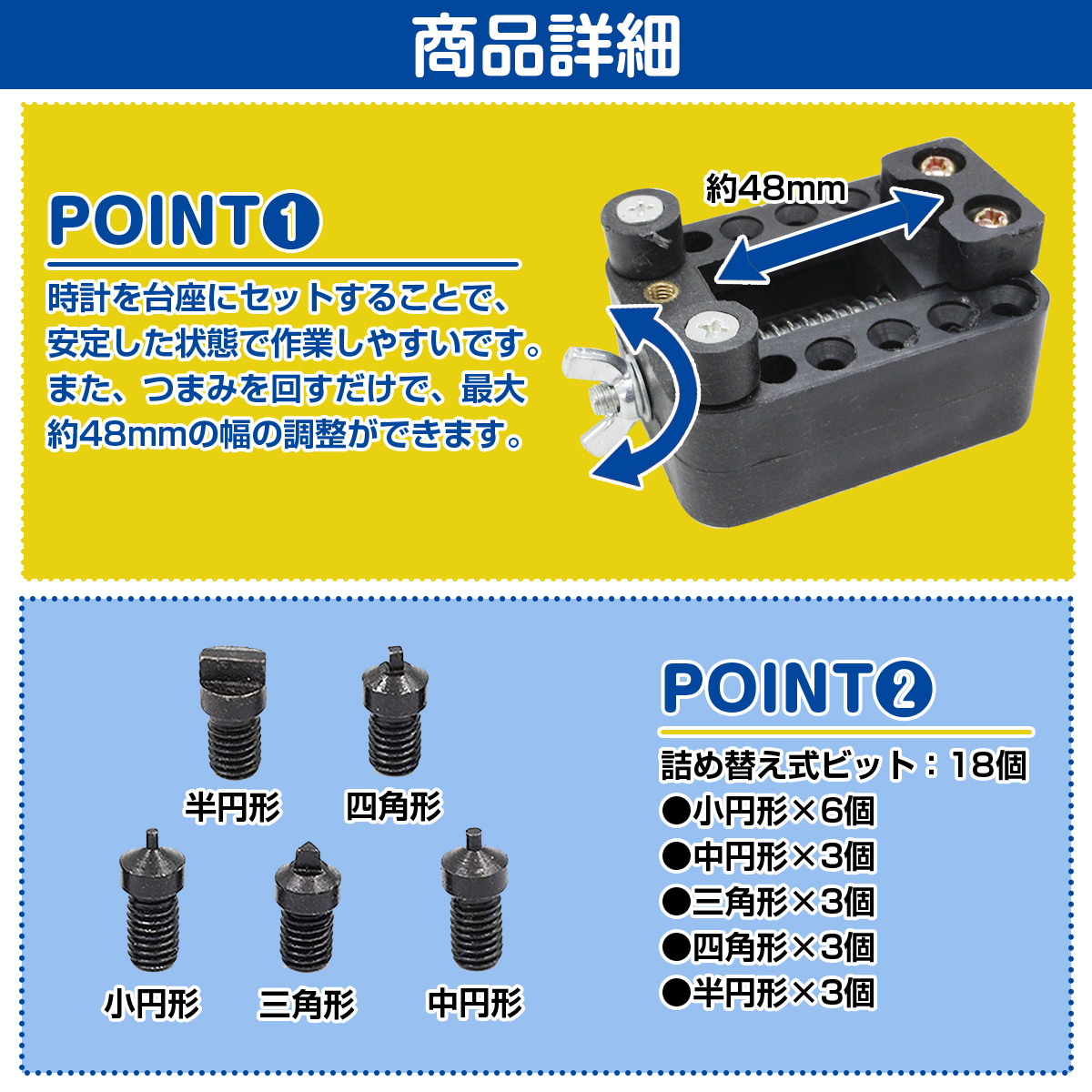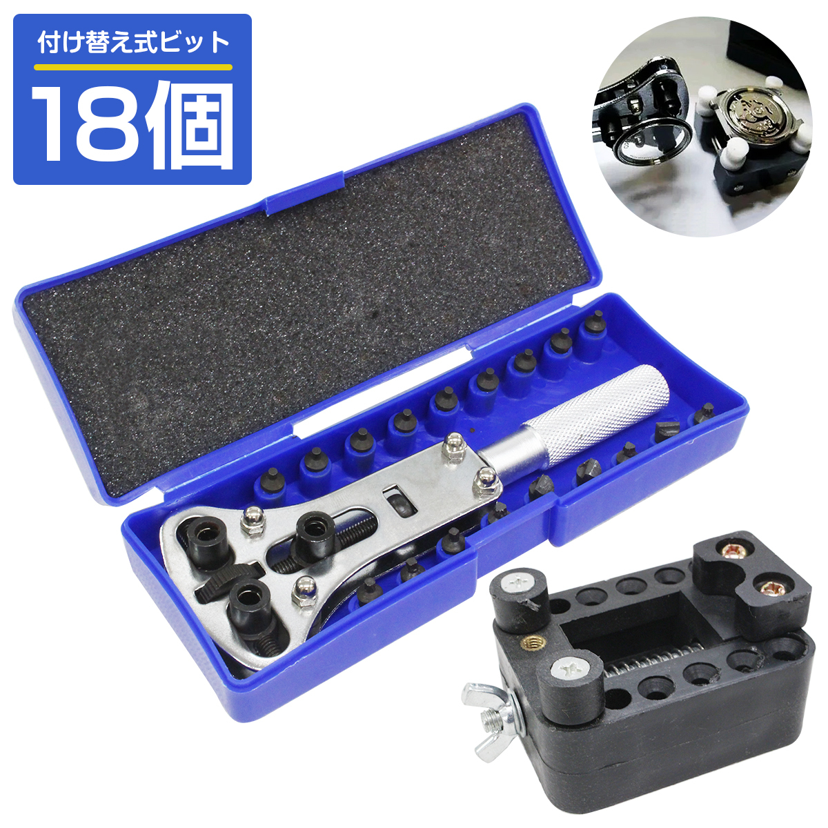 【送料無料】オープナー 固定台座 セット 三点支持 スクリューバック 6種 18ビット 開閉 裏蓋 開け器 腕 時計 電池交換 工具 修理 精密