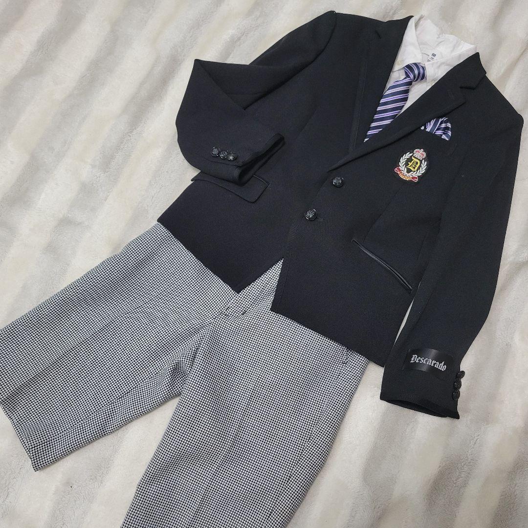ジャケット、ハーフパンツ、Yシャツ、ネクタイの4点セットです。