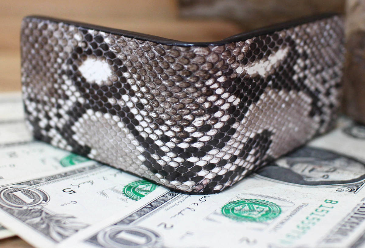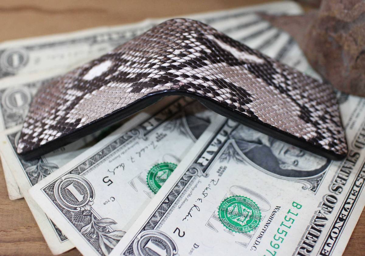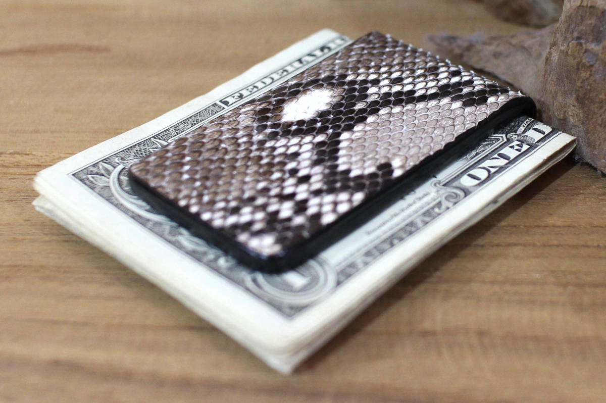 ★ダイアモンドパイソンスネークスキンを使ったマグネット式マネークリップ(内側は黒のイタリアンレザー張)
