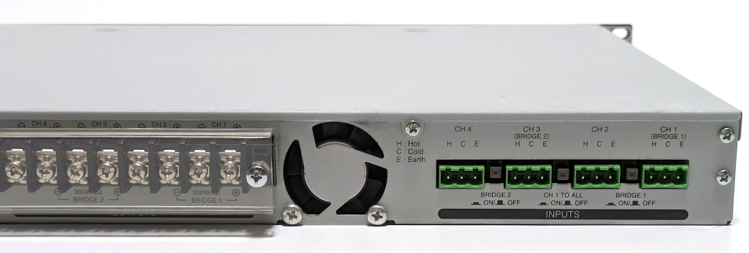 音楽再生機器をINPUTS CH1~CH4につなぎ、OUTPUTS CH1~CH4からそれぞれ音出しを確認しました。
