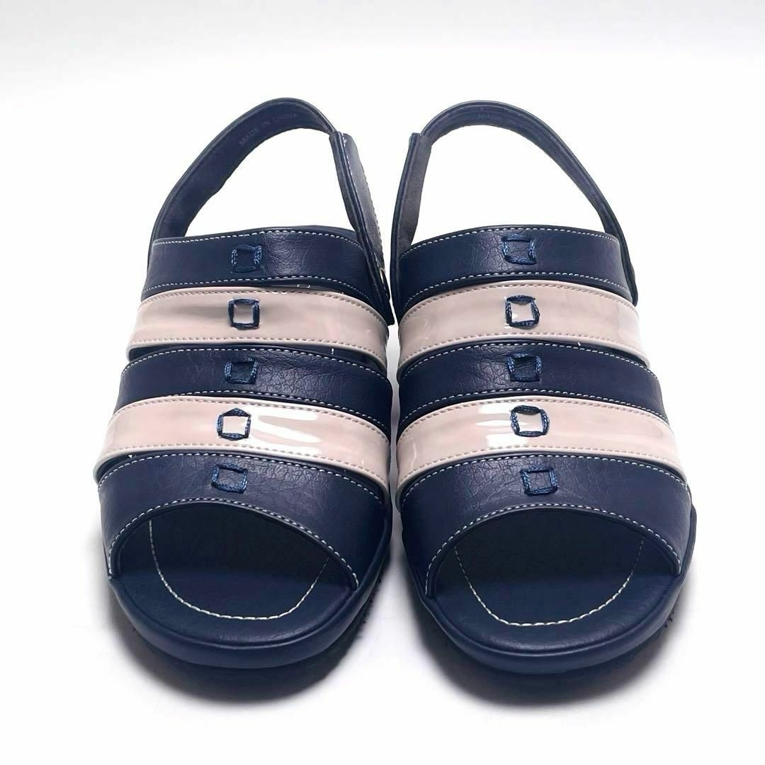 移動させられるストラップでミュール/ネックストラップサンダルとして履ける2wayデザインです。