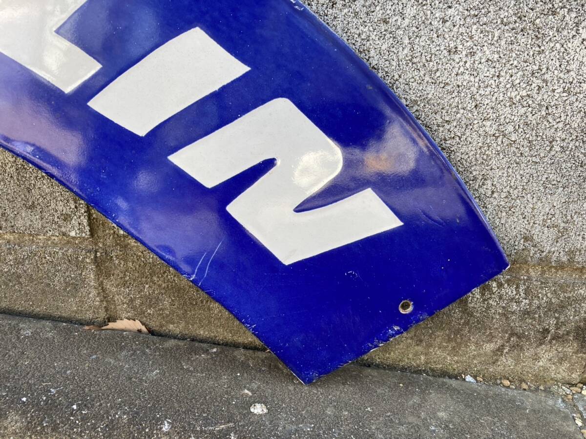 製造年代は不明です。湾曲型の珍しい看板で見栄えがいいです。