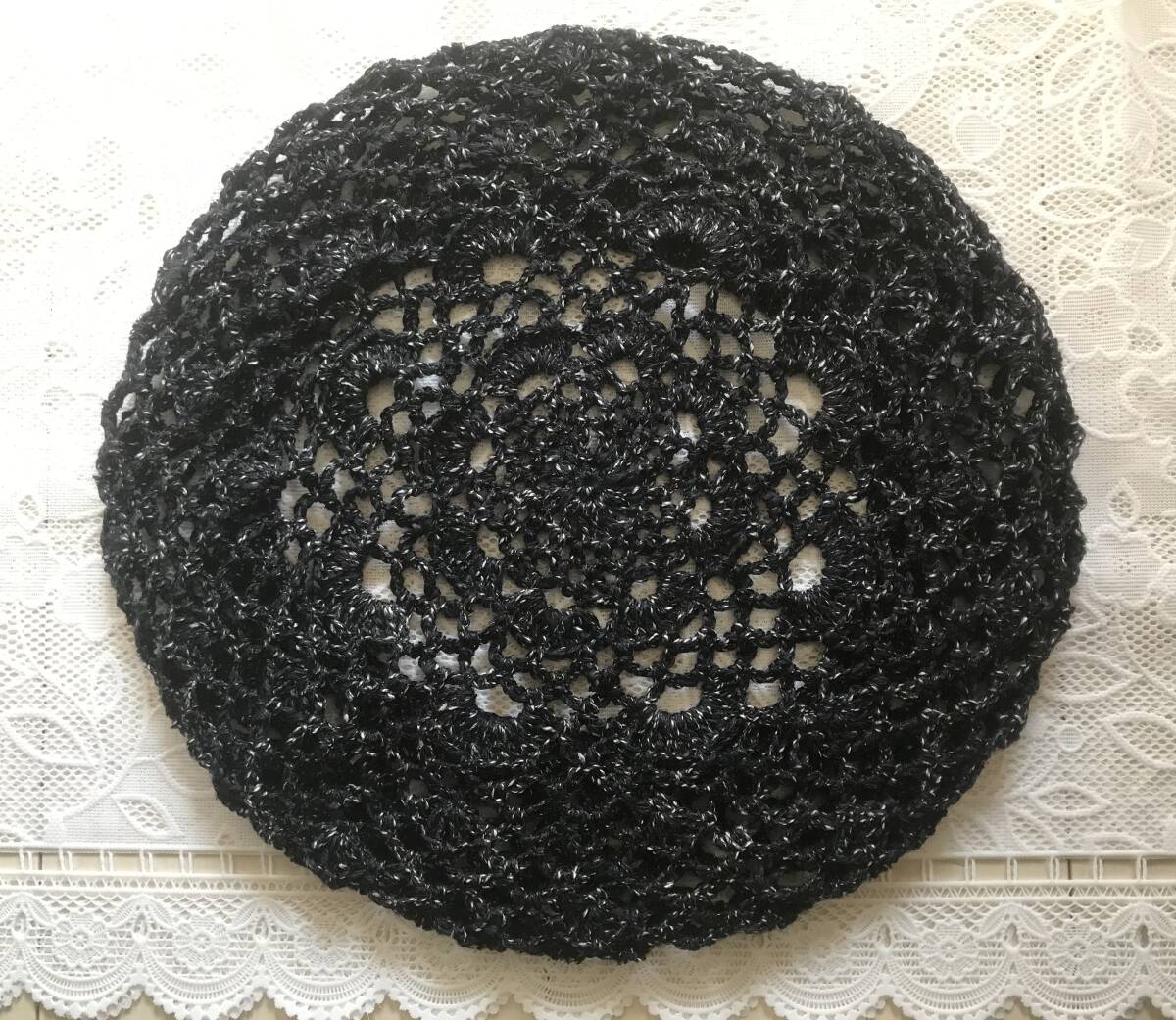 即決 ハンドメイド 手編み/軽くて通気性よい ゆったり 綿麻*花模様 透かし編み ベレー/医療 室内 帽子 ニット キャップ/薄毛白髪脱毛症隠し