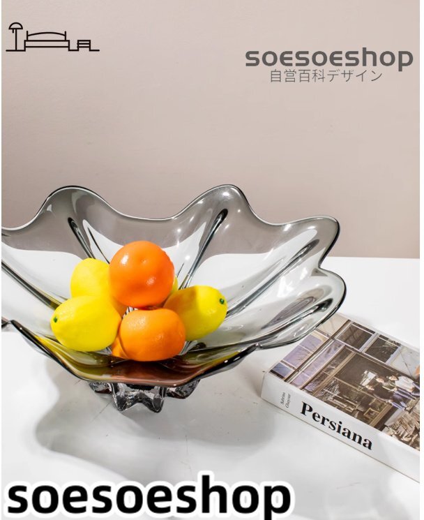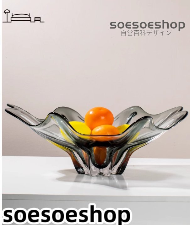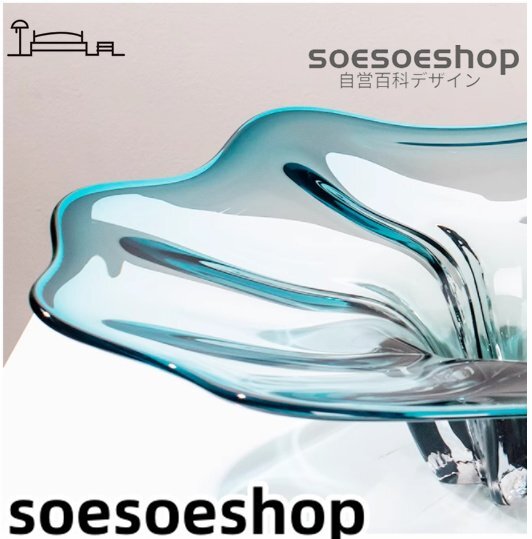 北欧風 高級感 不規則器具 果物皿 実用器物 瑠璃器具 収納 リビング ダイニングルーム テーブル台 ブルーグレー