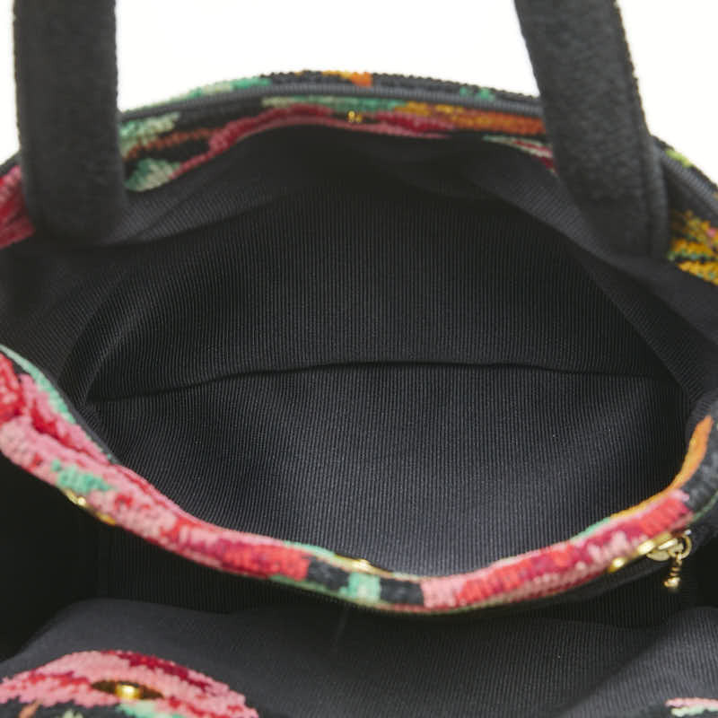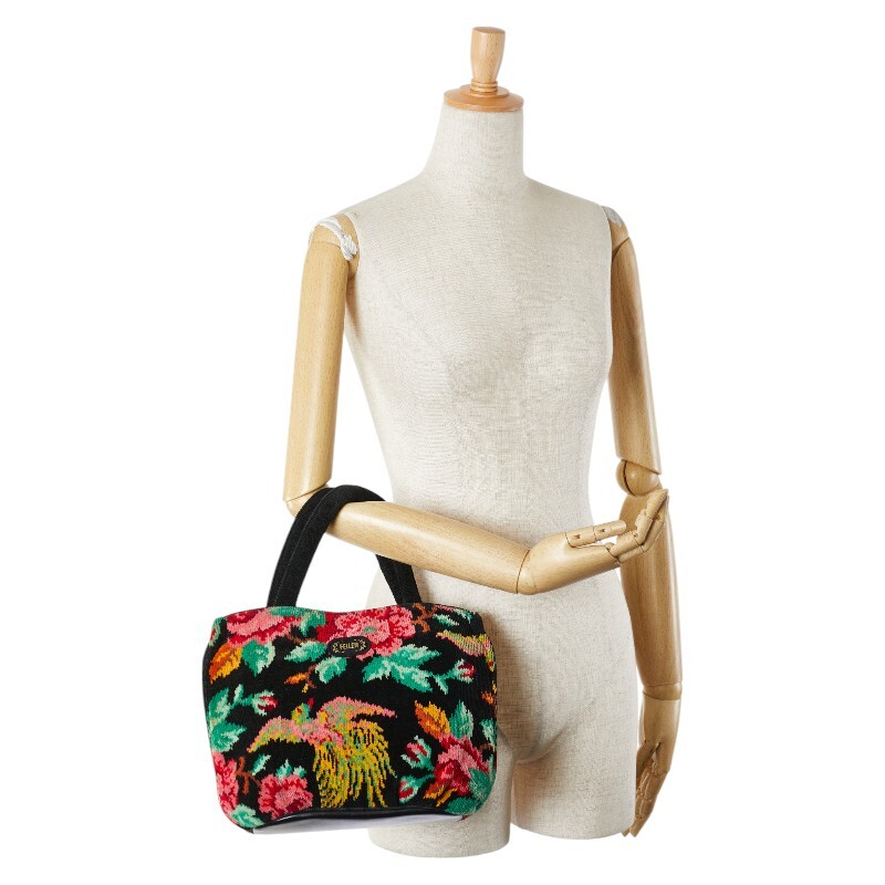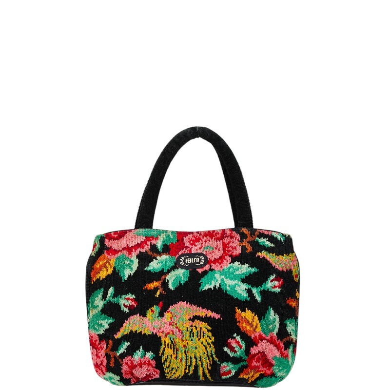 フェイラー 花柄 ハンドバッグ ブラック マルチカラー パイル レディース FEILER 【中古】