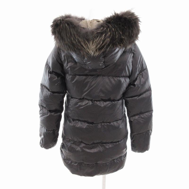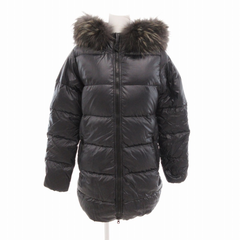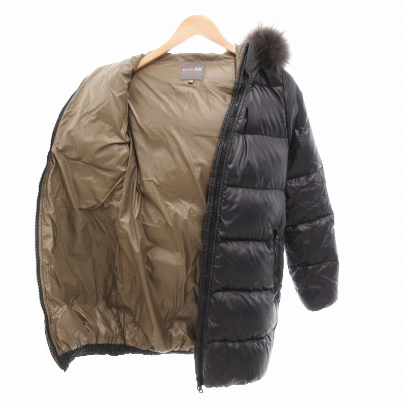デュベティカ DUVETICA ダウンコート フード ラクーンファー ナイロン ミドル丈 40 L 黒 ブラック /HO◇ 0218 ■GY04 レディース