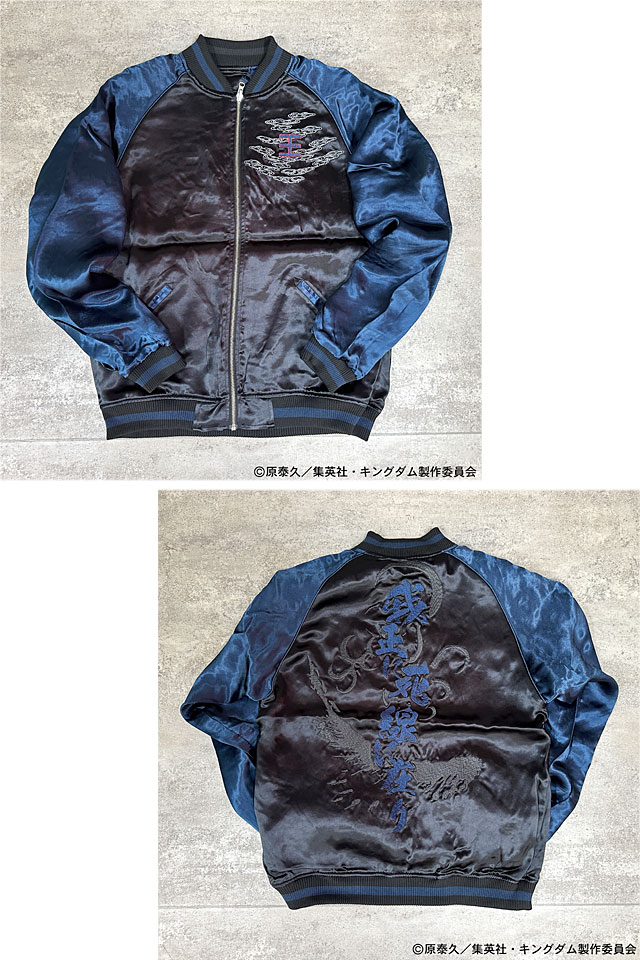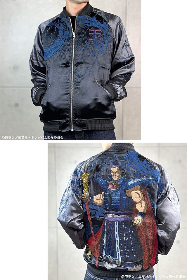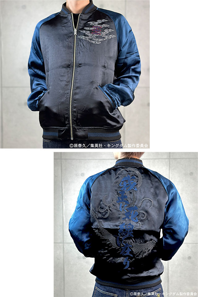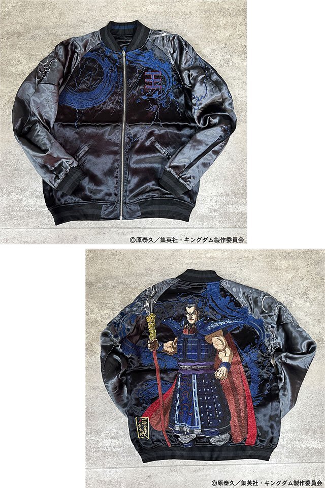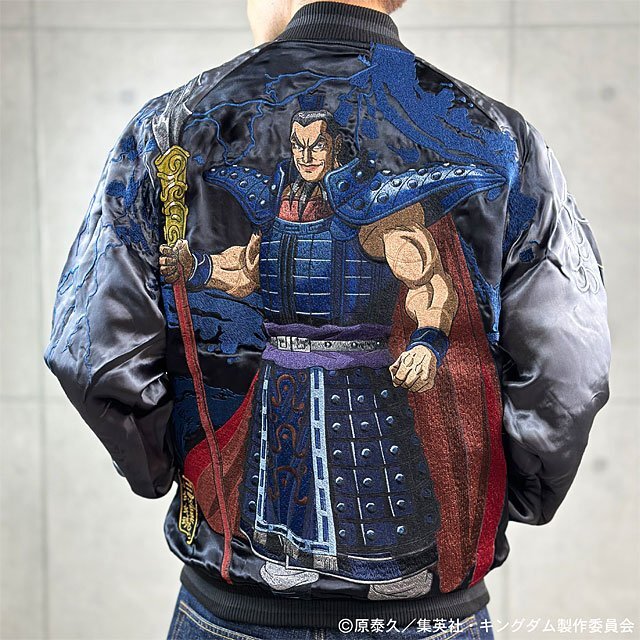 これまで様々なアニメライセンスとコラボレーションしてきた《絡繰魂》が、 「秦の怪鳥」と呼ばれる大将軍【王騎】の勇ましさをALL 刺繍で表現!! 右袖には王騎の刺青を刺繍し、背面下部のブランドロゴを一刀両断!! そして、リバーシブル裏背面には王騎が残した名言を刺繍!! ファン必見の逸品に仕上がりました!! | ||||||||||||||||||||