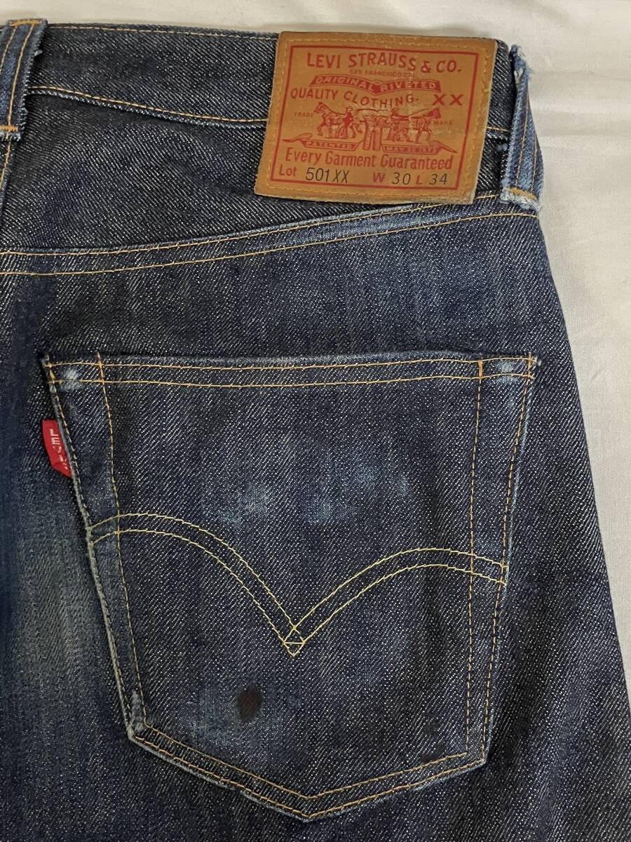 多少の使用感はございますが、目立つダメージや汚れなどはございません。右尻ポケットにシミがあります。 写真にてご確認ください。 ※商品には写真では確認しづらいダメージや汚れがある場合がございます。 予めご了承ください。 実寸サイズは ウエスト:約75cm 股上:約28cm 股下:約80.5cm 裾幅:約20cm です。 |