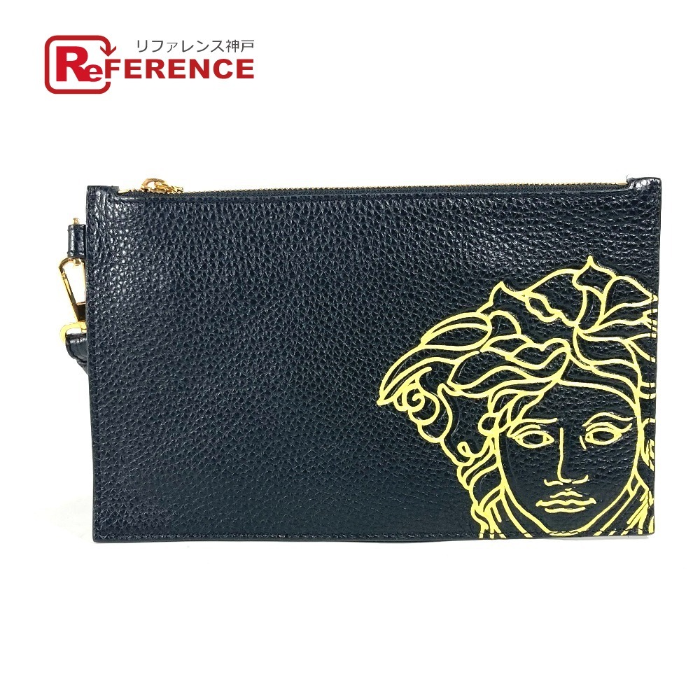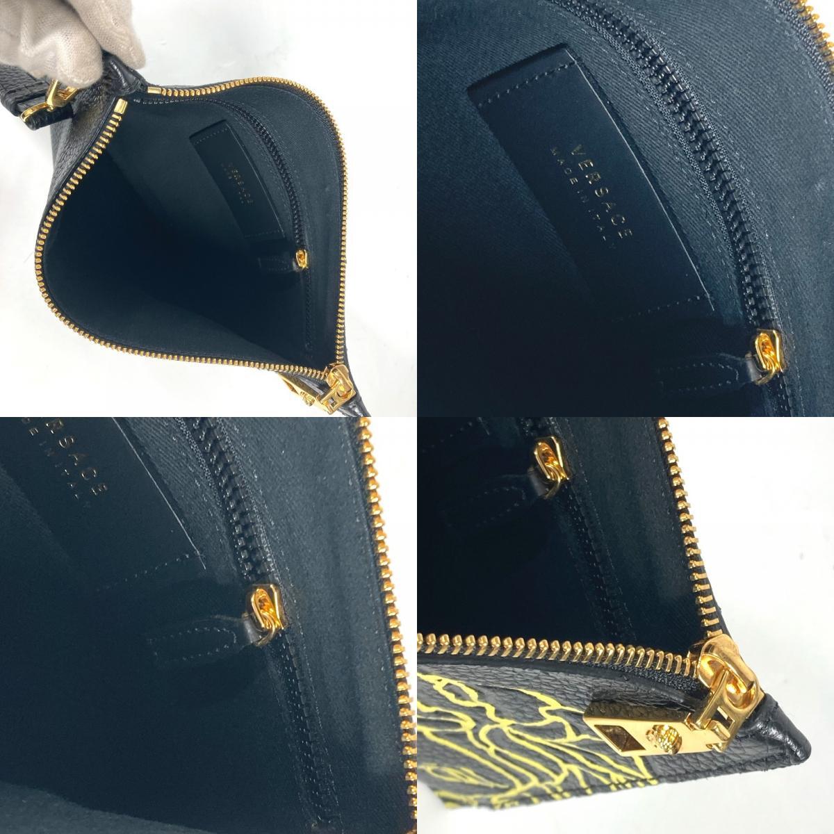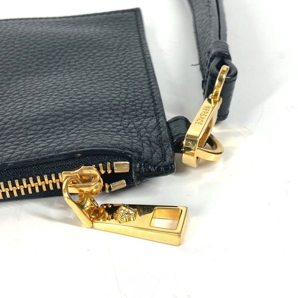 VERSACE ヴェルサーチ ロゴ メデューサ ストラップ付 ポーチ カバン クラッチバッグ ブラック ユニセックス【中古】