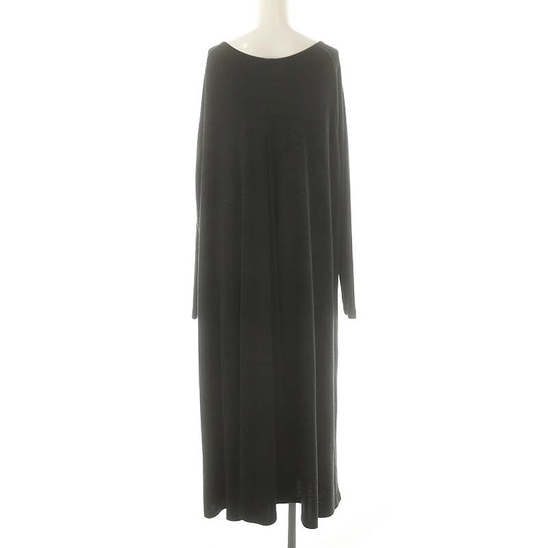 エッセンロートレアモン ESSEN. LAUTREAMONT ウールフレアカットソーワンピース ロング丈 長袖 38 チャコールグレー